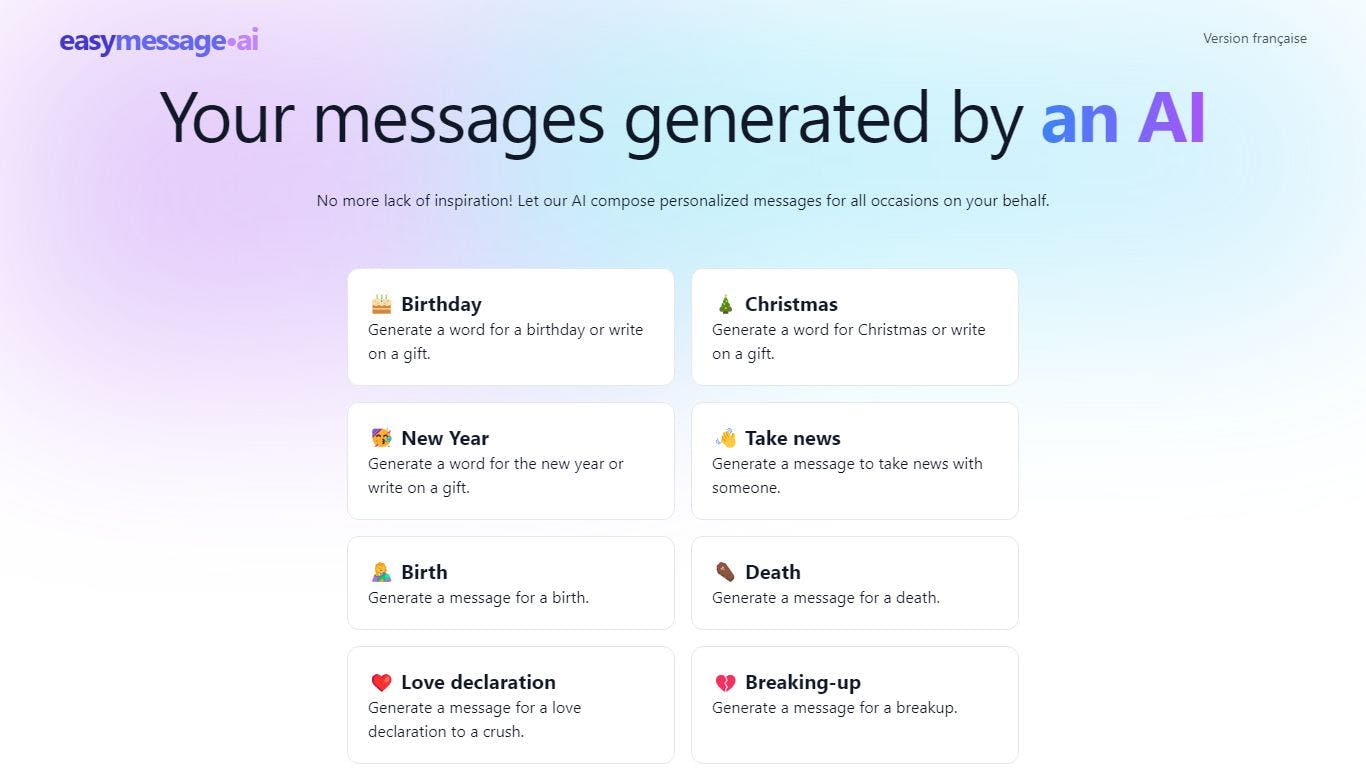 easyMessage.ai uses AI to generate text messages for every occasion (birthday, new year, weddingâ¦)