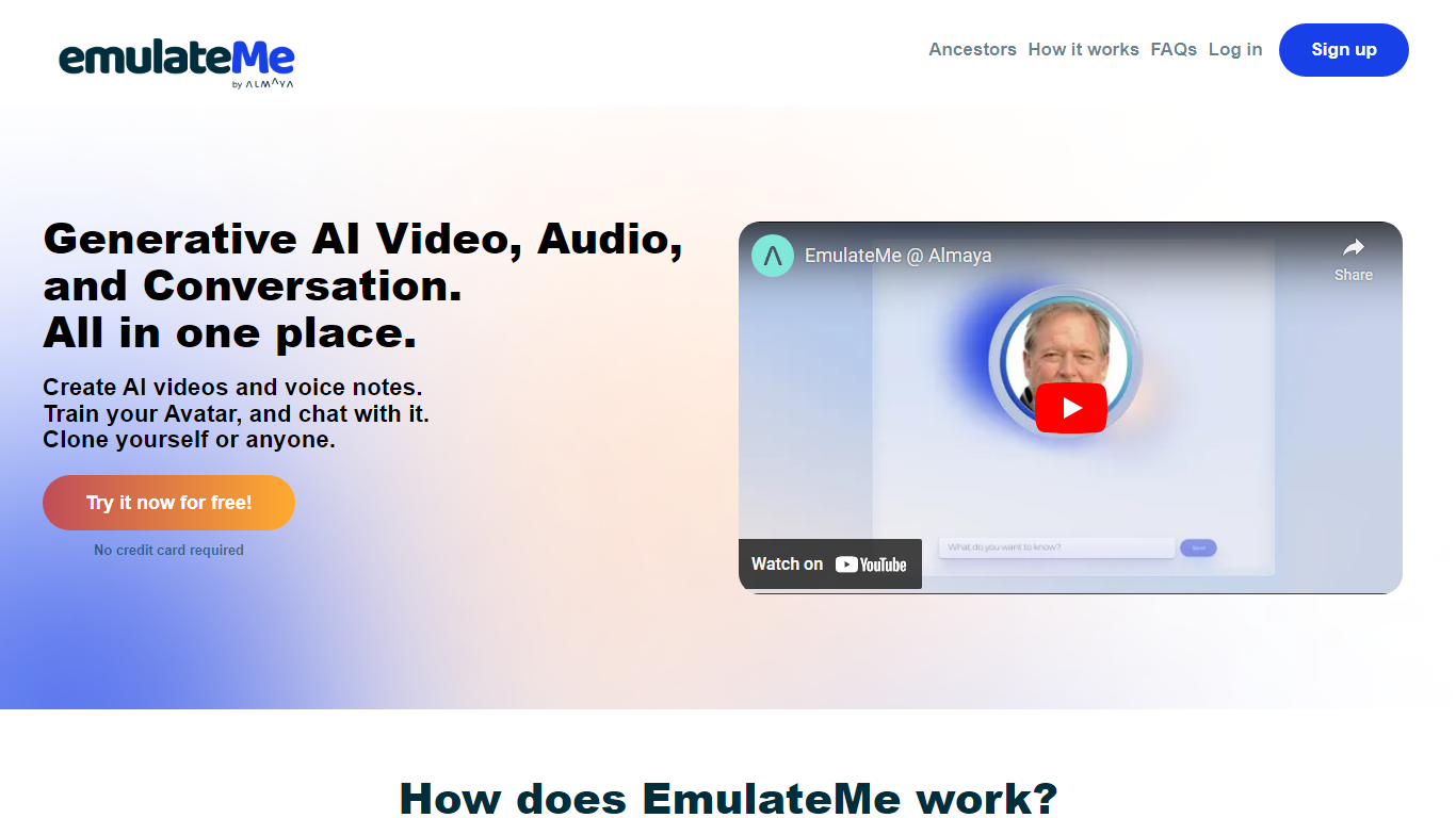 EmulateMe is a revolutionary platform that integrates Generative AI to offer a comprehensive suite of tools for video, audio, and conversational AI creations. With EmulateMe, users can effortlessly clone themselves or anyone else to create AI-driven videos and voice notes. The process begins with users uploading an image, voice clip, and personal documentation to train their Smart Avatar, enabling endless AI-driven interactions. EmulateMe has made it simple and accessible by providing a free trial without the need for a credit card, encouraging users to experience the power of AI with ease. The platform’s aim is to allow users to share their stories with loved ones forever, preserving family history and legacies through lifelike digital emulations. EmulateMe ensures a secure and private environment with encrypted content and a commitment to not selling user data or displaying ads, emphasizing user trust and content safety.