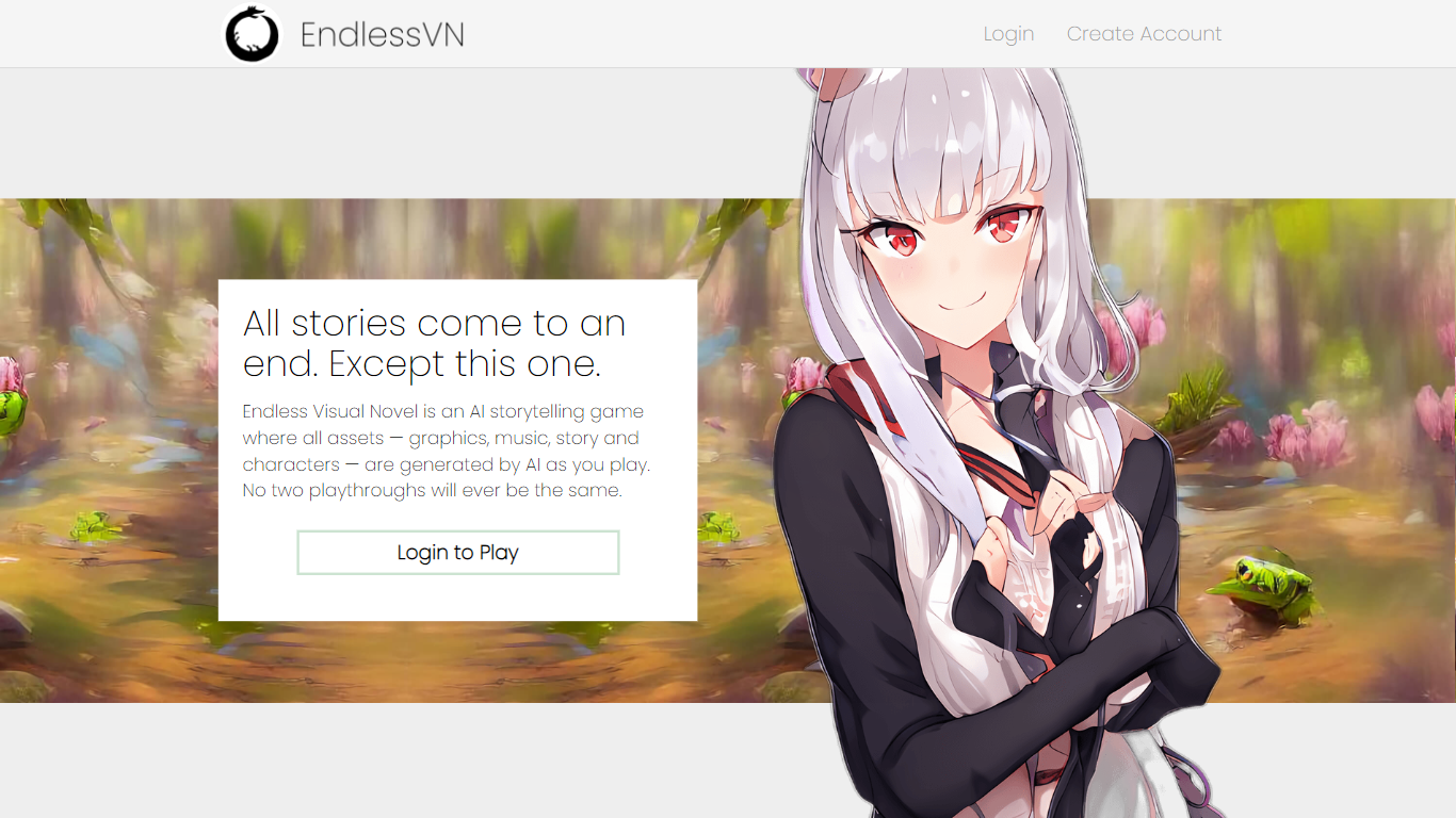 Endless Visual Novel is an AI storytelling game where all assets — graphics, music, story, and characters — are generated by AI as you play. With no two playthroughs being the same, this immersive game offers an endless adventure for all players. By logging in and creating an account, players can experience the thrill of the game and enjoy the unique narratives generated by the AI. From captivating graphics to original music compositions, Endless Visual Novel provides a truly personalized and engaging gaming experience.