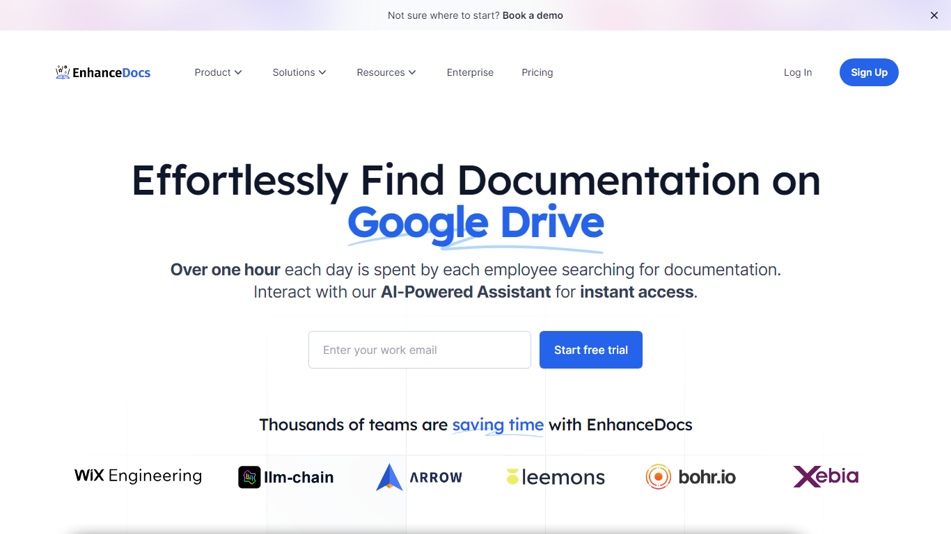 Enhance your team’s productivity with EnhanceDocs – the revolutionary documentation search tool that understands natural language. Are you wasting hours each day looking for information across Notion, Google Drive, Confluence, SharePoint, and OneDrive? Our AI-Powered Assistant is here to change that. With a simple setup, you can start a free trial and instantly access documentation via your favorite productivity tools like Slack, Teams, or Discord.