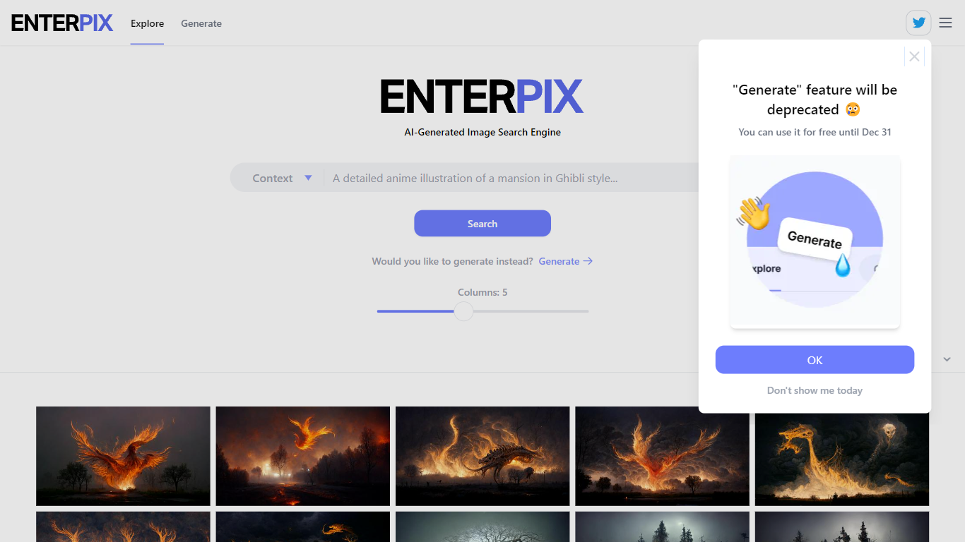 Enterpix is a website that offers an AI-generated image search engine. With its advanced algorithms, it allows users to search for specific images or generate new ones based on their preferences. The website provides a platform for users to explore and generate high-quality images with ease. Whether you need a detailed anime illustration in Ghibli style or any other specific image, Enterpix has got you covered. The website also offers various filters to help users refine their search results. With its user-friendly interface, Enterpix is a convenient tool for anyone looking to find or create captivating images.