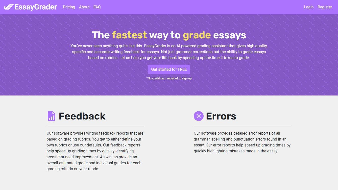 Essay Grader is a piece of software that reduces the time it takes teachers to grade essays/papers using AI. Get feedback reports (based on grading rubrics), error reports and essay summaries. AI detection tool coming soon!