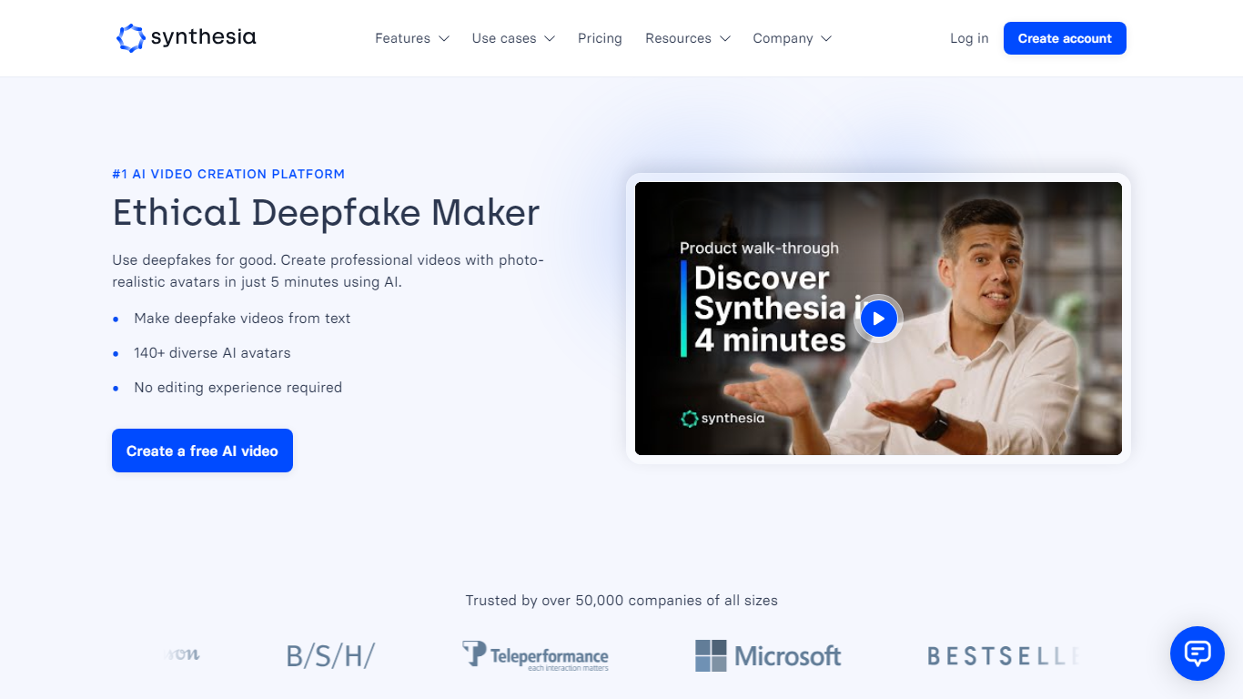 Transform how you communicate with the power of AI deepfake technology at Synthesia. Our Ethical Deepfake Maker offers a unique opportunity to harness the benefits of deepfake generators for positive impact. Simply input your script, select from a variety of AI presenters, and create a professional video in no time. At Synthesia, we believe in the responsible use of AI, ensuring that our tools are employed for good. Whether you’re enhancing your educational content, creating engaging presentations, or bringing a personal touch to customer communication, our platform gives you the power to deliver messages with authenticity and impact.