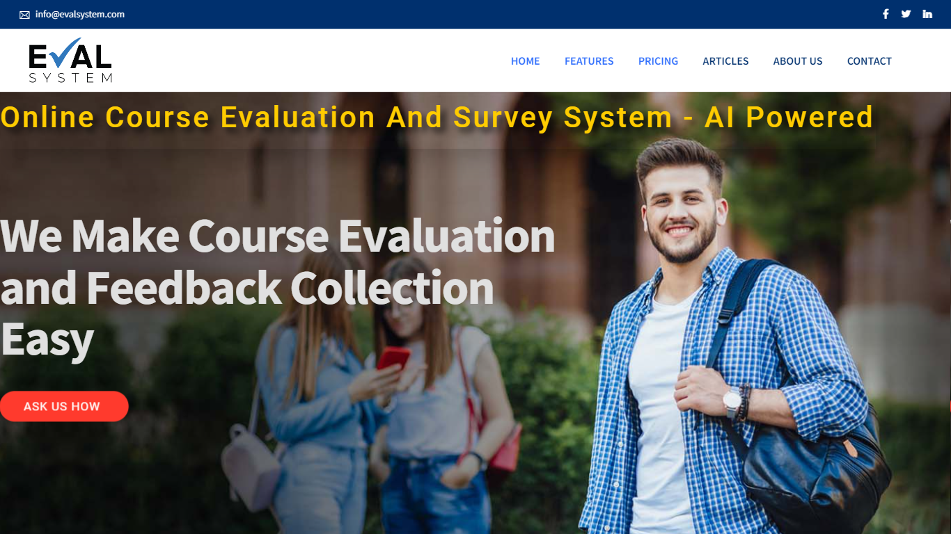 EvalSystem is an AI course evaluation software for higher education, K-12 and B2B companies. Course evaluations allow education institutions to optimize classroom experience through regular evaluations of professor performance. B2B companies can leverage EvalSystem to conduct user research, conduct employee surveys, and optimize training programs.