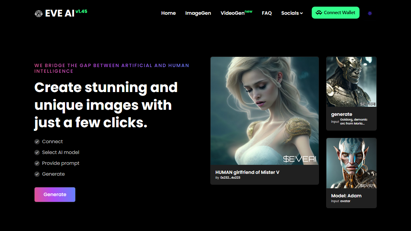 EVEAI.XYZ introduces a transformative approach to creative asset generation, harnessing the power of artificial intelligence to revolutionize your project workflow. With EVEAI, experience the synergy of human creativity and AI efficiency as you generate production-quality images and videos tailored to maintain style consistency throughout your projects. The platform’s advanced AI models provide an intuitive process for creating stunning visuals, offering seamless integration into your creative endeavors with unparalleled speed. Whether you’re looking to bridge the gap between artificial and human intelligence or craving the ease of generating one-of-a-kind assets, EVEAI stands ready to empower your artistic vision.