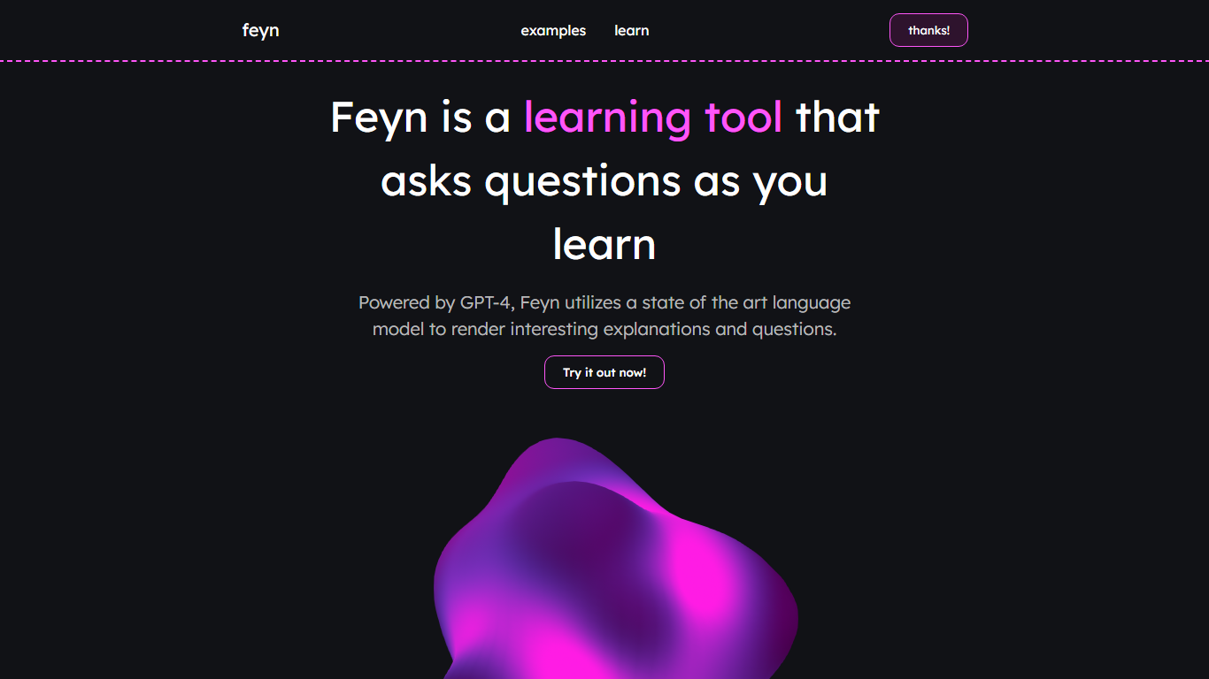 Discover **Feyn**, your personal Richard Feynman-inspired learning companion. Unleash the power of query-based learning with an interactive tool designed to provoke thought and deepen understanding. **Feyn** harnesses the capabilities of GPT-4, a cutting-edge language model, tailored to deliver insightful explanations and craft questions that challenge and engage. Perfect for learners who seek a more dynamic approach to knowledge acquisition—**Feyn** is not just about answers, it’s about fostering curiosity and a robust learning experience. Created by @shelwin_, this tool is set to transform your learning journey. Dive into the world of **Feyn** and experience a new realm of learning where every question leads to discovery. Try it today and join the community of inquisitive minds!