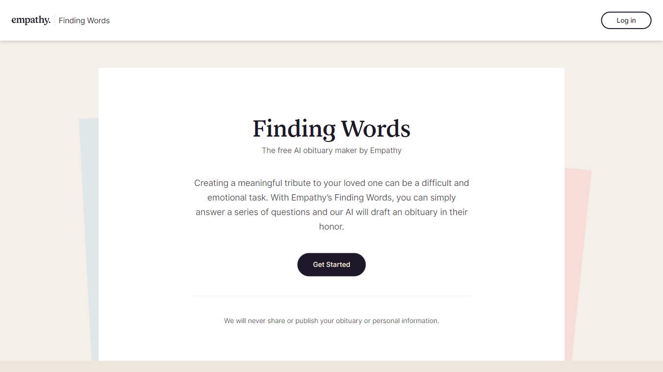 Finding Words is a powerful and user-friendly obituary maker developed by Empathy. With this free online tool, you can honor your loved ones by creating beautifully written tribute obituaries. This AI-powered obituary maker simplifies the process by guiding you through a series of simple and thoughtful questions to generate a heartfelt obituary that truly captures the essence of your loved one’s life.