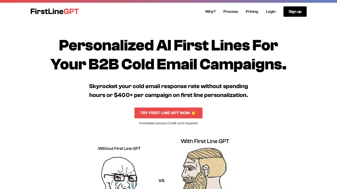Boost your B2B cold email campaign success with First Line GPT. This innovative tool provides personalized first lines that are designed to increase your email response rates dramatically. With First Line GPT, you no longer need to spend excessive amounts of time or money to personalize your cold emails. For only $49, you can get 3000 personalized first lines every month, ensuring that your emails stand out in a crowded inbox.
