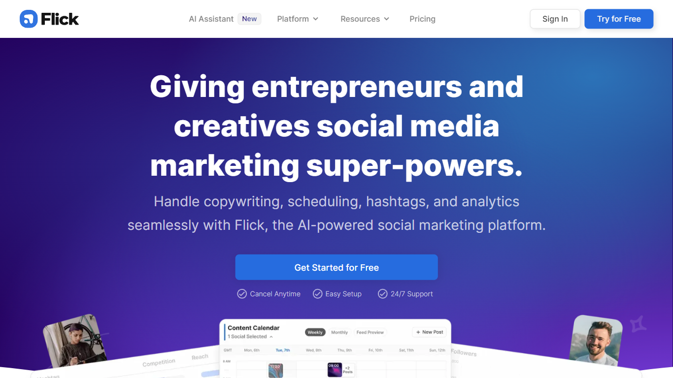 Flick is a comprehensive Social Media Marketing Platform designed to help business owners and marketers elevate their social media presence. With a user-friendly interface, this platform offers a variety of tools including content scheduling, hashtag research, AI content creation, and advanced analytics. Users can visually plan and organize their content calendar to ensure consistent posting, employ hashtag search and collections to enhance reach, and utilize detailed analytics reports to monitor performance. The platform supports Instagram marketing extensively and provides resources and training materials for social media improvement. Flick includes both iOS and Android apps for on-the-go content management. A 7-Day Free Trial is available for new users to experience the platform’s capabilities firsthand.