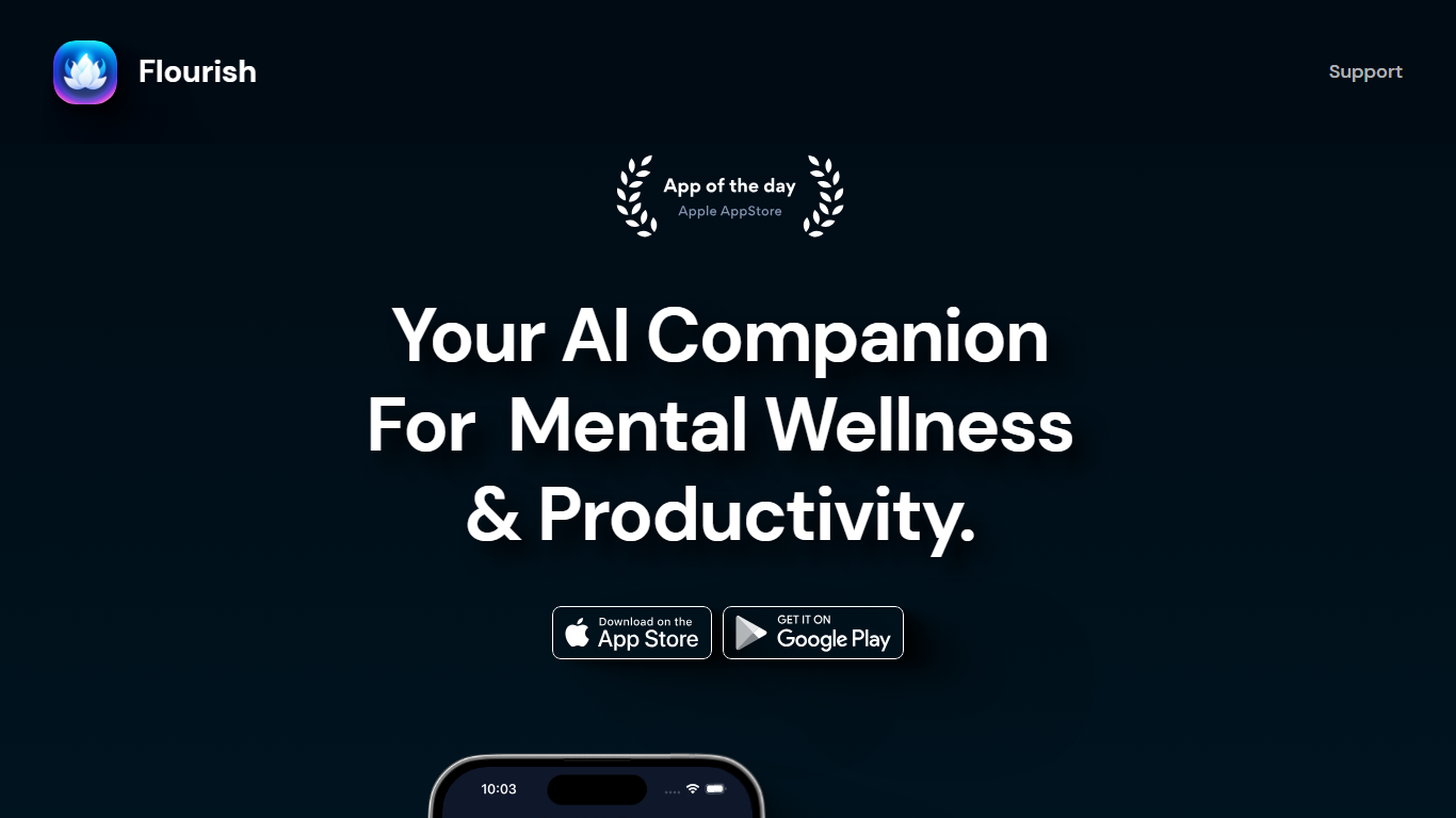Welcome to Flourish, your premier AI-powered companion designed to support your journey towards better mental wellness and productivity. At Flourish, we understand the power of meaningful dialogue, which is why we offer you Fleur, an AI therapy companion, to engage with on a personal level. Fleur is grounded in psychological principles, ensuring that every conversation helps support your mental well-being.