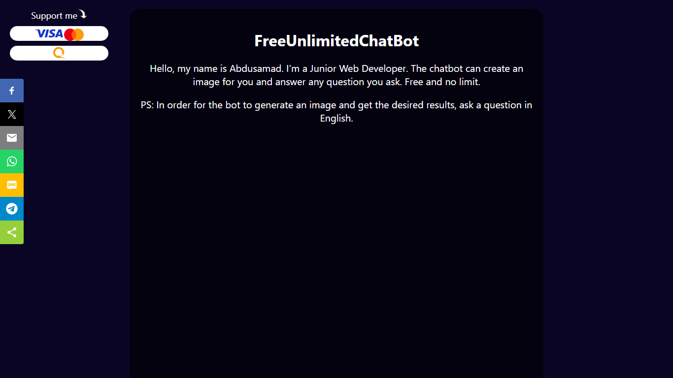 Unlock unlimited possibilities with FreeUnlimitedChatBot, the ultimate free solution for seamless image creation and question answering services. This state-of-the-art chatbot assists users effortlessly, providing limitless interactions at no cost. Perfect for individuals and businesses looking to integrate a versatile chatbot without financial constraints. The user-friendly interface combined with advanced functionalities makes FreeUnlimitedChatBot a top pick for enhancing engagement and productivity.