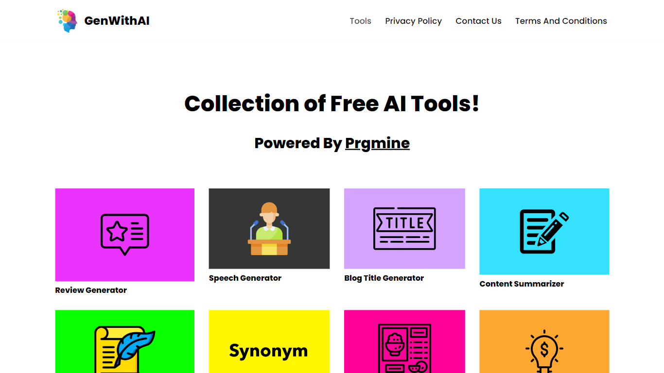 Discover new realms of creativity and productivity with GenWithAI. Your premier destination for a diverse array of AI-powered tools, all for free. Brought to you by Prgmine, we’re dedicated to enhancing your innovation and efficiency. Elevate your work with cutting-edge technology at your fingertips. Unleash the power of GenWithAI today.