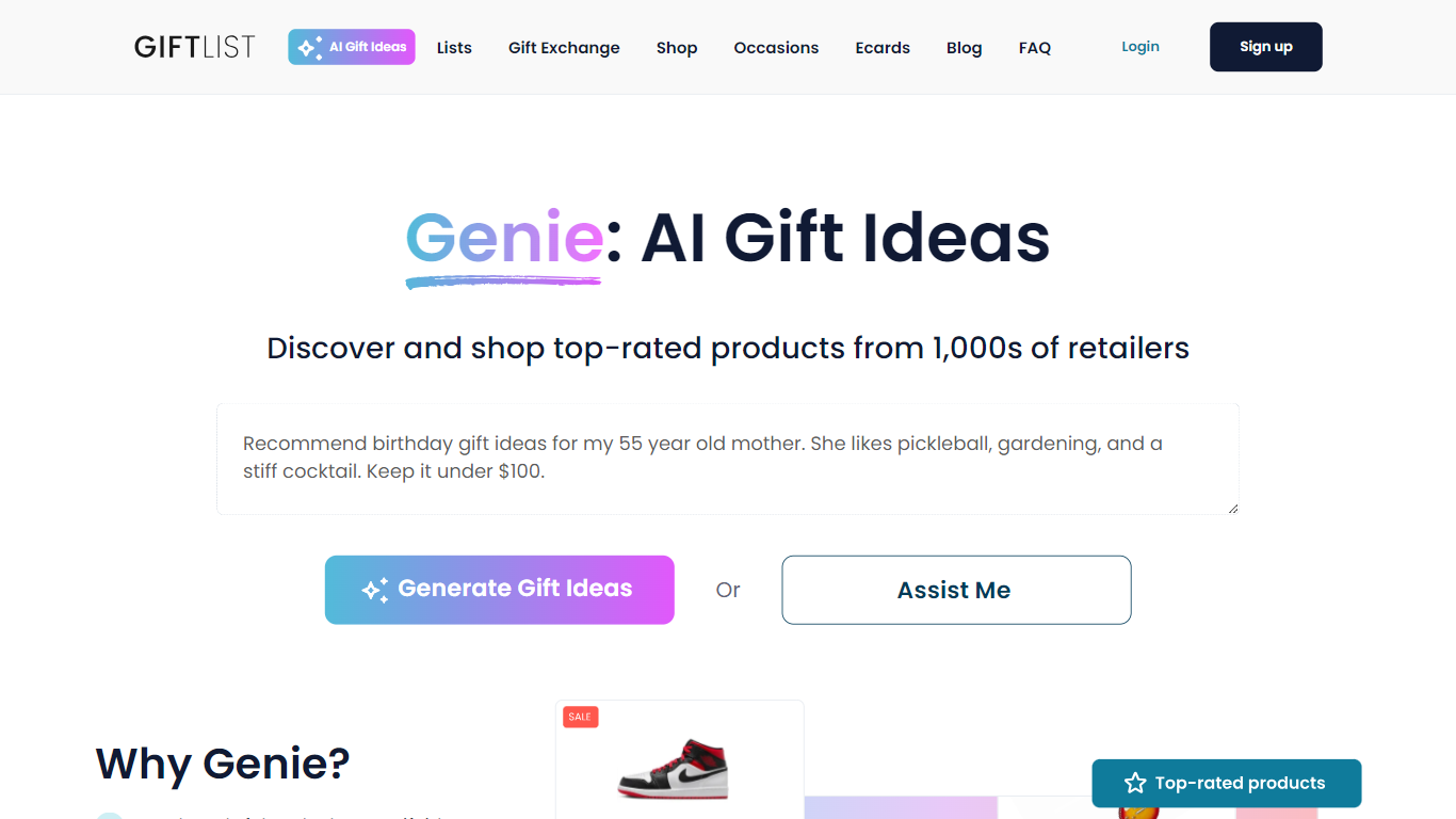 GiftList Genie is an AI-powered gift ideas generator which provides thoughtful and relevant gift ideas for any occasion or recipient.