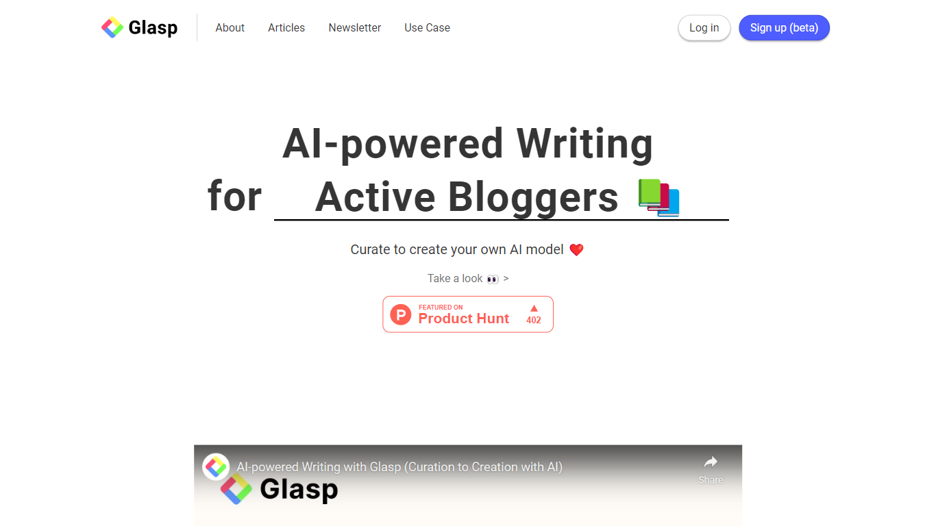 Glasp is an AI-powered writing tool that caters to various users such as newsletter writers, active bloggers, thought leaders, and serious note-takers. With Glasp, users can curate and create their own AI models to enhance their writing experience. The platform allows users to highlight and add notes to web content, which can then be used to train personalized AI models. Additionally, users can write with their AI models, create weekly best reads, get ideas, and more. Glasp also supports seamless export with Markdown format, making it easy to paste content into note-taking apps. Users can also share their Glasp profiles and learn from like-minded individuals through the platform’s social network. The Wall of Love section showcases testimonials from satisfied users who appreciate Glasp’s ability to improve their reading and note-taking habits.