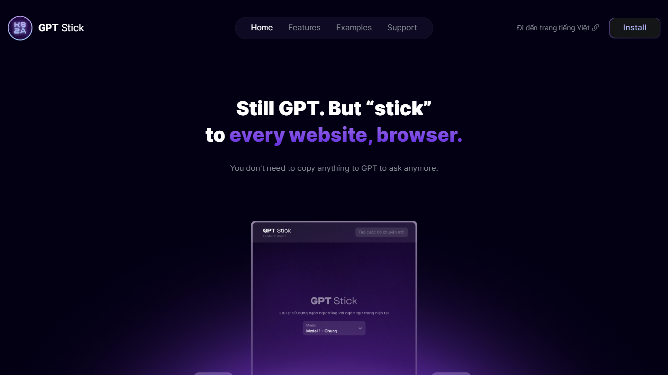 Discover the power of GPT Stick by KB2A, your ultimate tool designed to seamlessly integrate with any website or browser. As an enhanced version of the renowned GPT, GPT Stick offers an intuitive and flexible solution for various online tasks. Its deployment versatility allows it to stick to your workflow with ease, improving your productivity as you navigate through different web interfaces. With GPT Stick, you get the same high-quality, intelligent functionalities of GPT, now more accessible than ever. Whether you’re seeking assistance with writing, data analysis, or simply looking for smart automation, GPT Stick is here to elevate your digital experience.