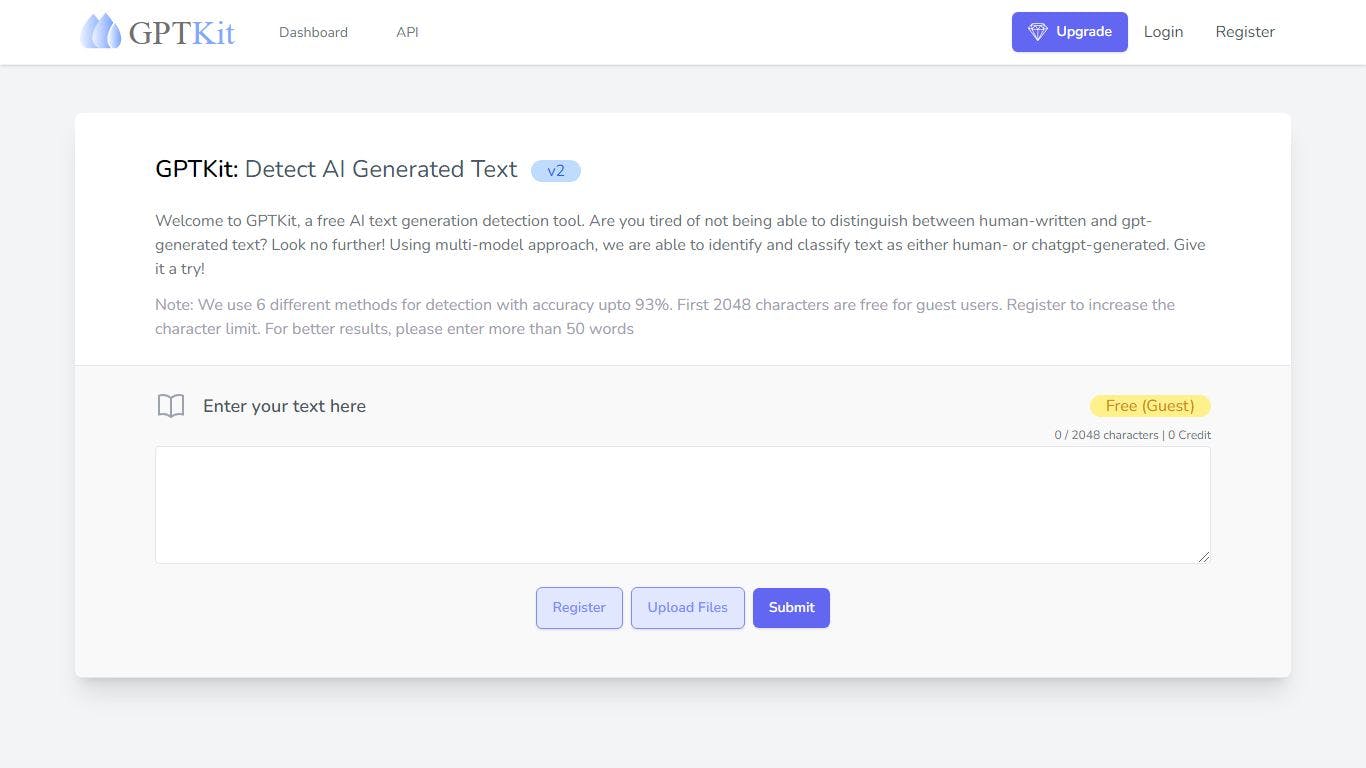 GPTKit is a free, easy-to-use AI text generation detection tool that uses six different methods to accurately identify and classify machine-generated text. It provides reports on the authenticity and reality of the content analyzed