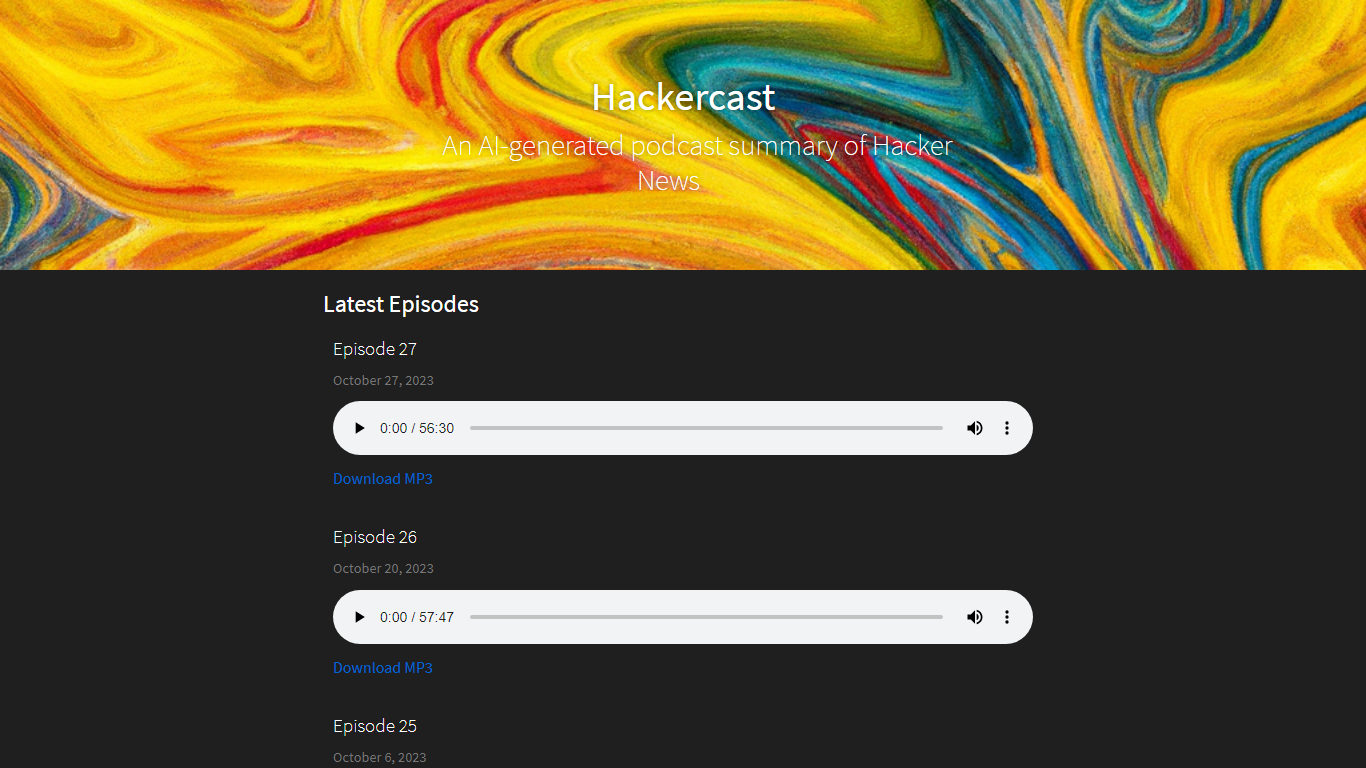 Discover the essence of Hacker News with Hackercast, a pioneering podcast that masterfully summarizes the latest tech trends, programming insights, and business discussions into easily digestible audio episodes. Dive into the world of tech through engaging summaries, all crafted through the collaborative intelligence of Langchain and GPT-4. This AI-driven approach ensures you stay informed on the go, with a new episode released every week, capturing the most intriguing and relevant Hacker News stories.