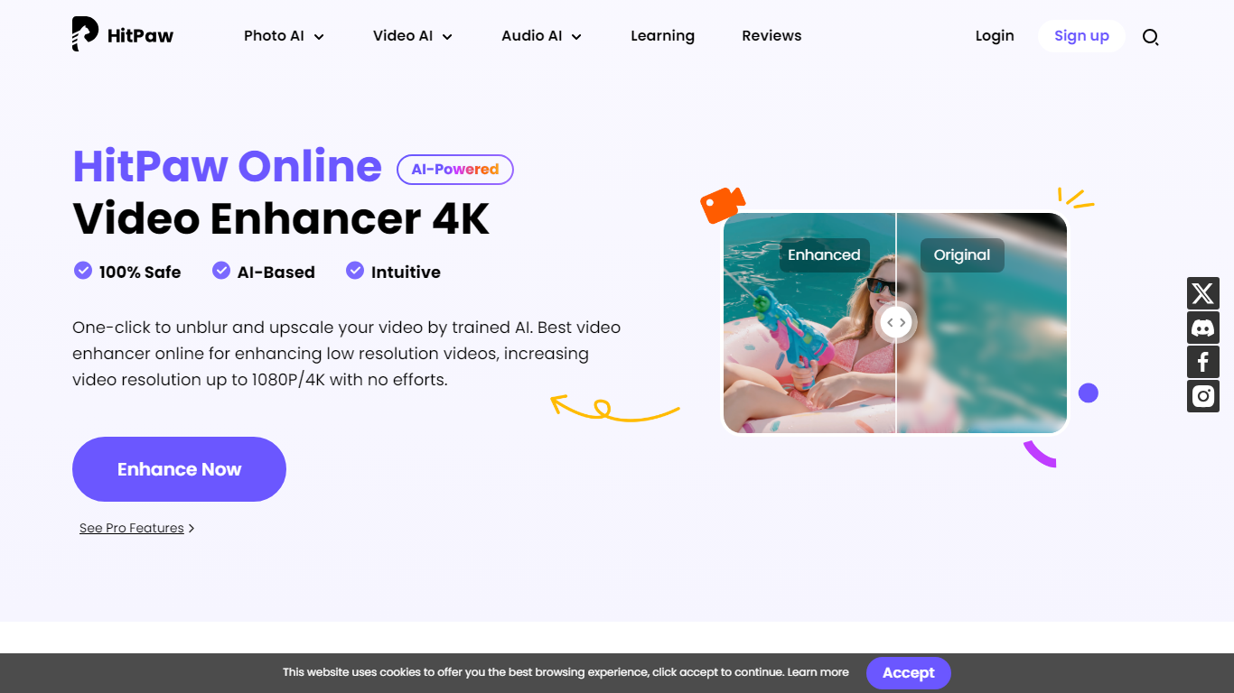 Elevate your video quality effortlessly with HitPaw Online AI 4K Video Enhancer, designed to be your go-to solution for AI-enhanced video upscaling. Experience the power of advanced technology to transform your videos to stunning 4K resolution in a flash.