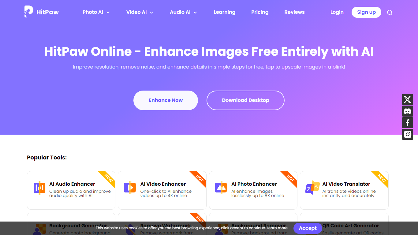 Revolutionize your digital media with HitPaw Online, the ultimate toolbox for enhancing your photos, videos, and audio. Access a plethora of AI-powered tools designed to elevate the quality and creativity of your content. Remove backgrounds, watermarks, and unwanted objects effortlessly, or animate old photos with a click. Upgrade video resolution up to 4K, polish audio with noise reduction, and convert formats with ease. With intuitive hot tools and a user-friendly interface, HitPaw Online streamlines your editing process, whether you’re a seasoned pro or just starting out. Embrace a seamless workflow across various media types, all without the need for software installation.