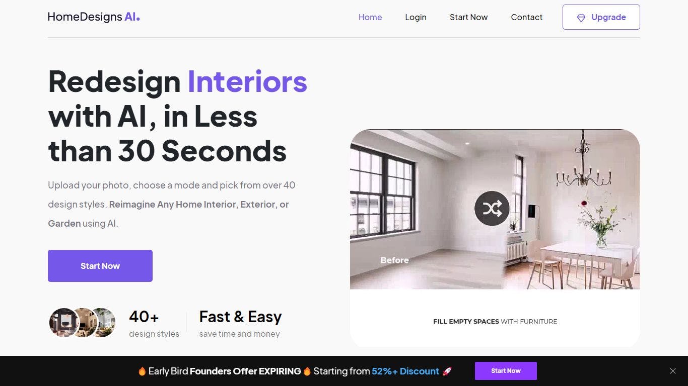 HomeDesignsAI is a web-based application that allows you to transform and redesign all the parts of your home, including interiors, exteriors, gardens, patios, and everything else. Utilizing the power of Artificial Intelligence, the app generates new design ideas every few seconds, offering a wide range of design styles, modes, room types, and more to help you achieve the desired outcome.