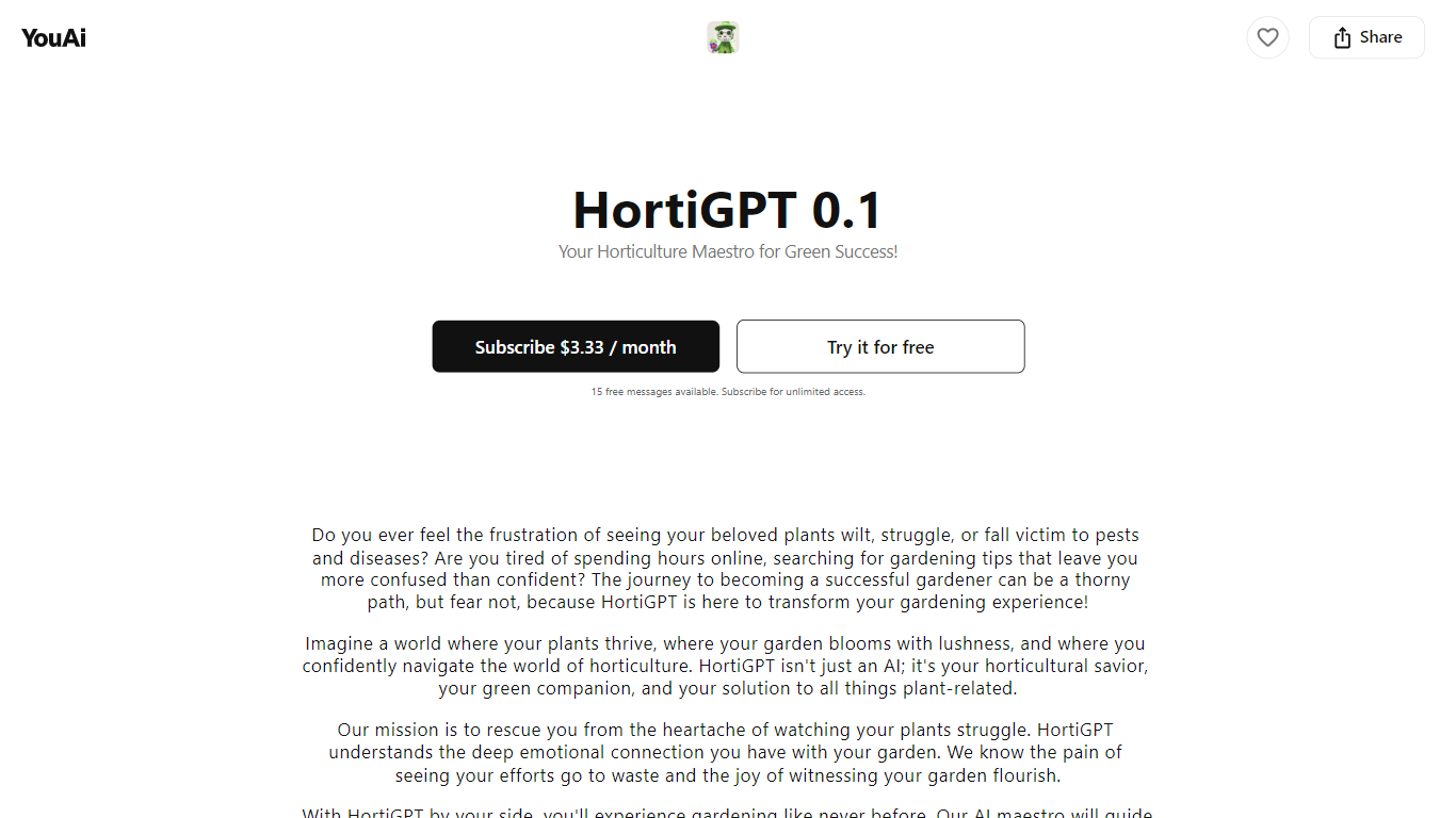 Don’t let gardening challenges hold you back. Subscribe now, and let’s embark on a green adventure together with HortiGPT as your trusted gardening companion!”