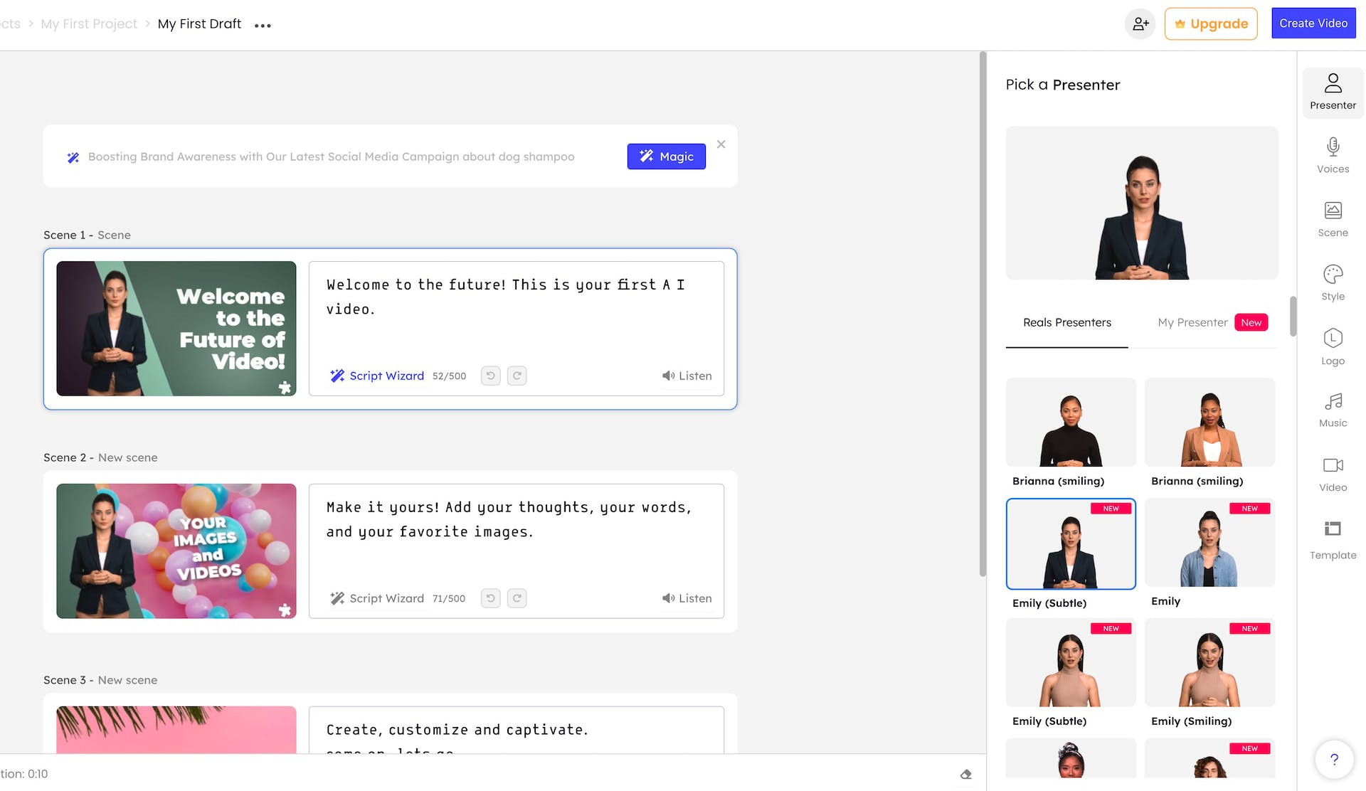 Turn any text, slides or prompt into professional presenter-led videos in minutes. In any language.