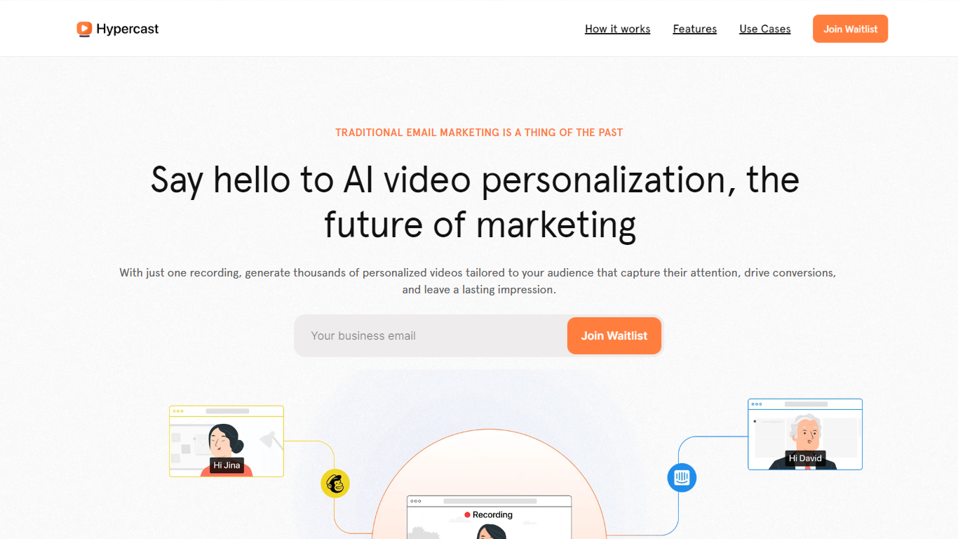 Hypercast is a modern video personalization platform that generates thousands of personalized videos tailored to specific audiences. It helps capture audience attention, drive conversions, and leave a lasting impression without spending hours creating personalized videos. The feature-rich AI video personalization platform supports a wide range of use cases across industries.