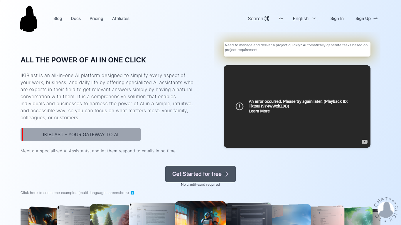 - **No Credit Card Required:** Begin your AI journey with free and easy access to IKiBlast’s services.