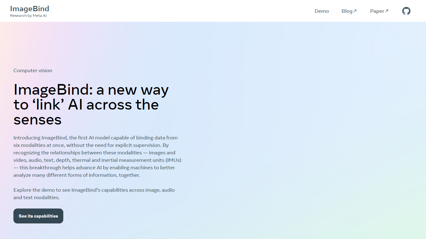 Experience the power of AI with **ImageBind by Meta AI**, a versatile multimodal model crafted for seamless integration of various data formats. Perfect for professionals and enthusiasts alike, ImageBind leverages advanced AI technology to provide an unprecedented level of data compatibility and manipulation.