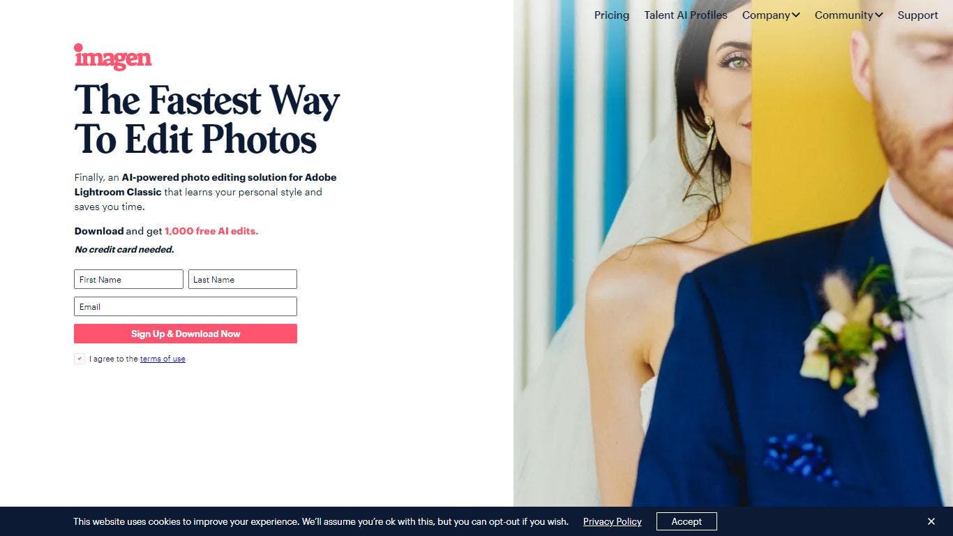 Imagen is an AI-powered photo editing solution, that works on Adobe Lightroom Classic (desktop app). The proprietary AI learns and analyzes from previous edits to create a personalized editing AI Profile, which in turn, applies the edit across Lightroom catalog/s at a fraction of the time, clearing photographers’ time so they can focus on what they love.
