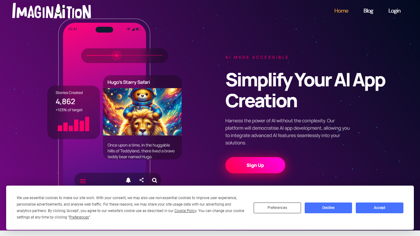 Unlock the potential to create inclusive and accessible mobile applications with IMAGINaiTION, your go-to low-code platform. Streamline your AI App development process without having to grapple with its complexity. With advanced AI integration made simple, our platform enables a more democratic approach to app creation, catering to the diverse needs of your audience. Empower your startup to launch disruptive apps effortlessly by leveraging our rapid prototyping tools and AI-driven efficiency. At IMAGINaiTION, we are committed to making a difference by providing tools to build mobile apps that address social challenges, foster community connections, and create an enduring impact.