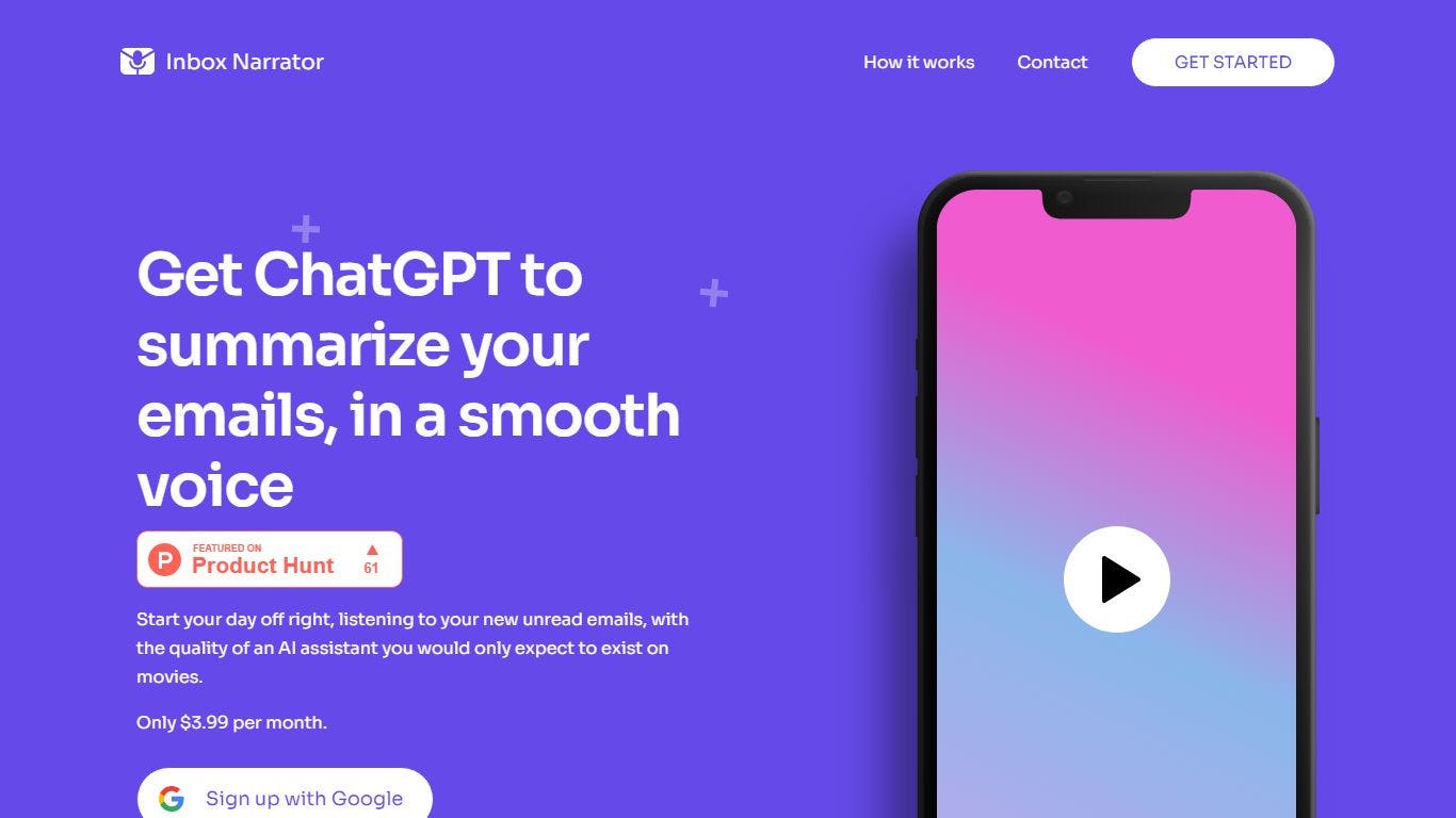 Inbox Narrator summarizes your Gmail emails using ChatGPT, and delivers them in an impressive human-like voice via Siri or Google Assistant every morning. Transform your inbox into a short morning podcast, while you get ready for your day.