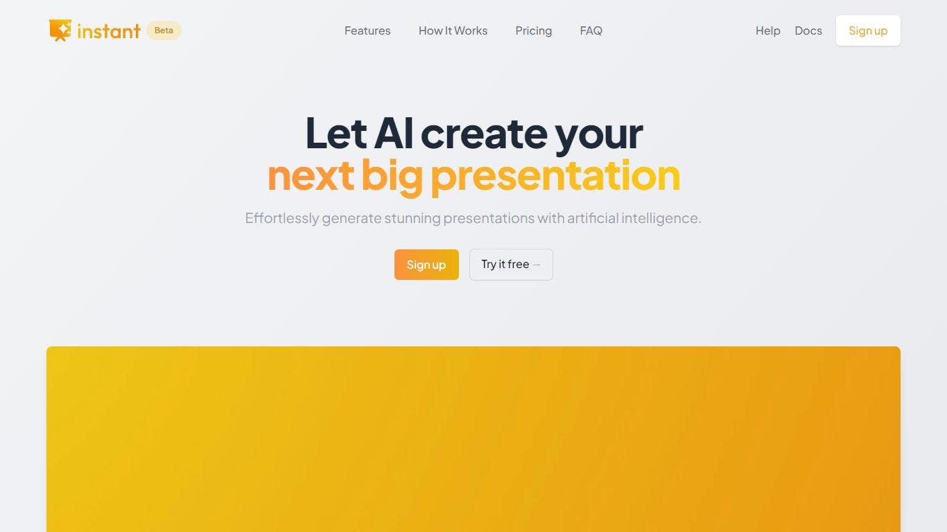 Don’t waste time on tedious slide creation. Try Instant today and create captivating presentations in a matter of minutes!