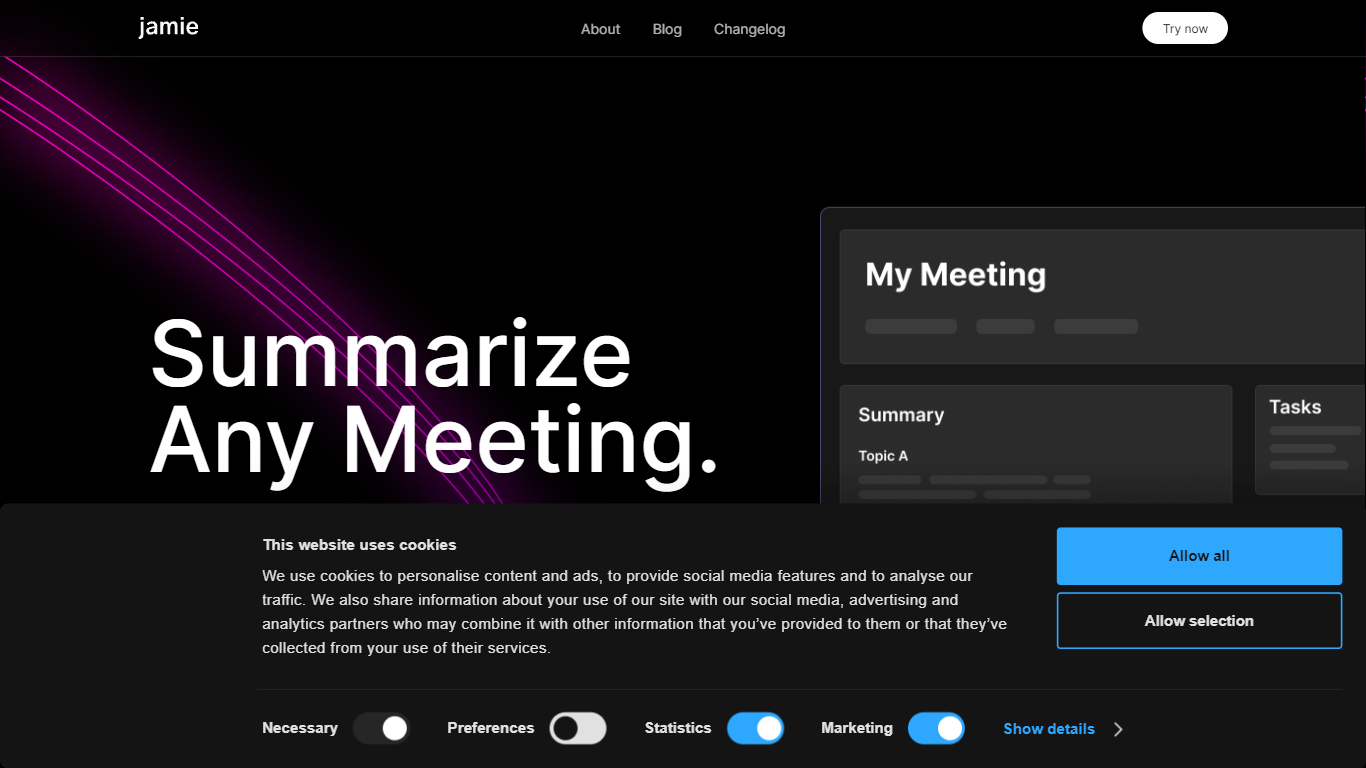 jamie is an advanced AI-based assistant that revolutionizes the way you take meeting notes and summaries. With its sophisticated algorithms and cutting-edge technology, jamie ensures that you have accurate and comprehensive meeting records without the hassle of manual note-taking.