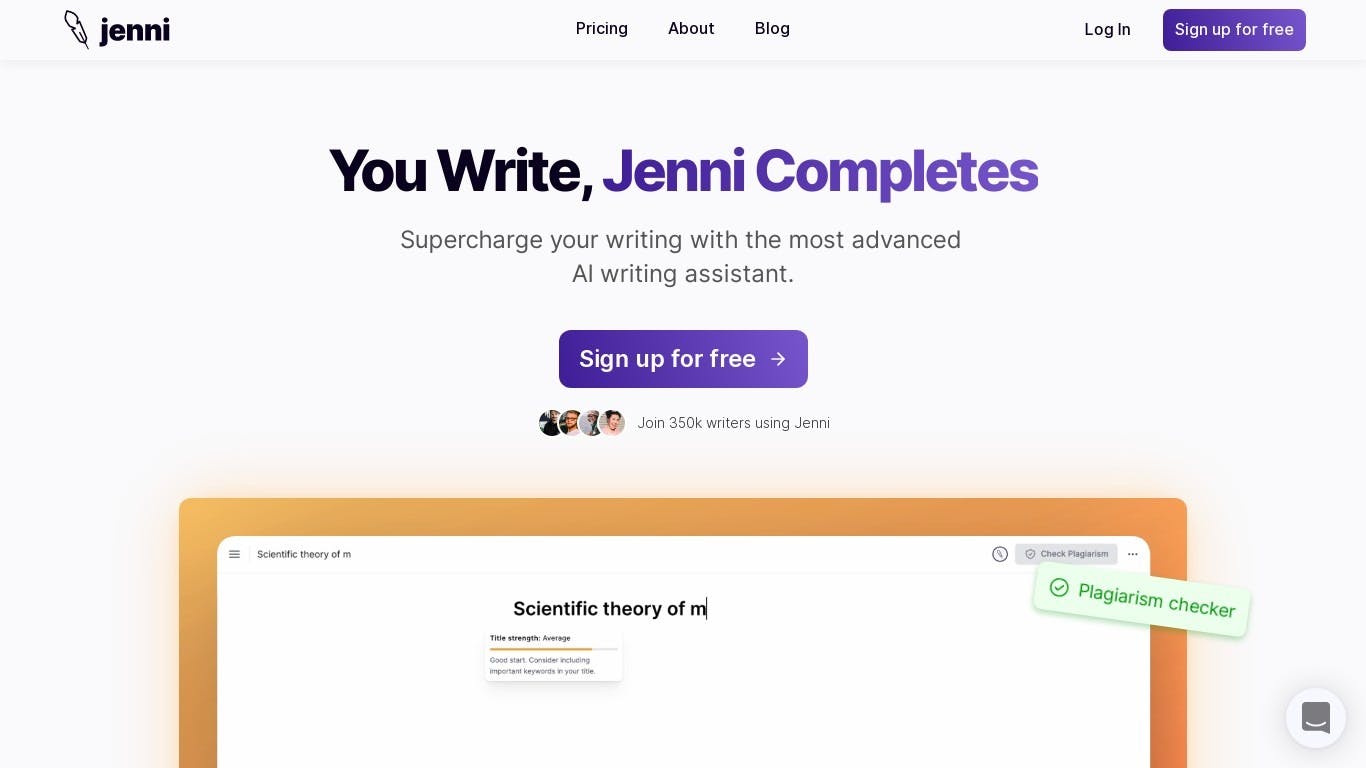 Jenni is the AI assistant that keeps you in the driver’s seat. Jenni works with you as you write, and once you write with Jenni you can never go back.
