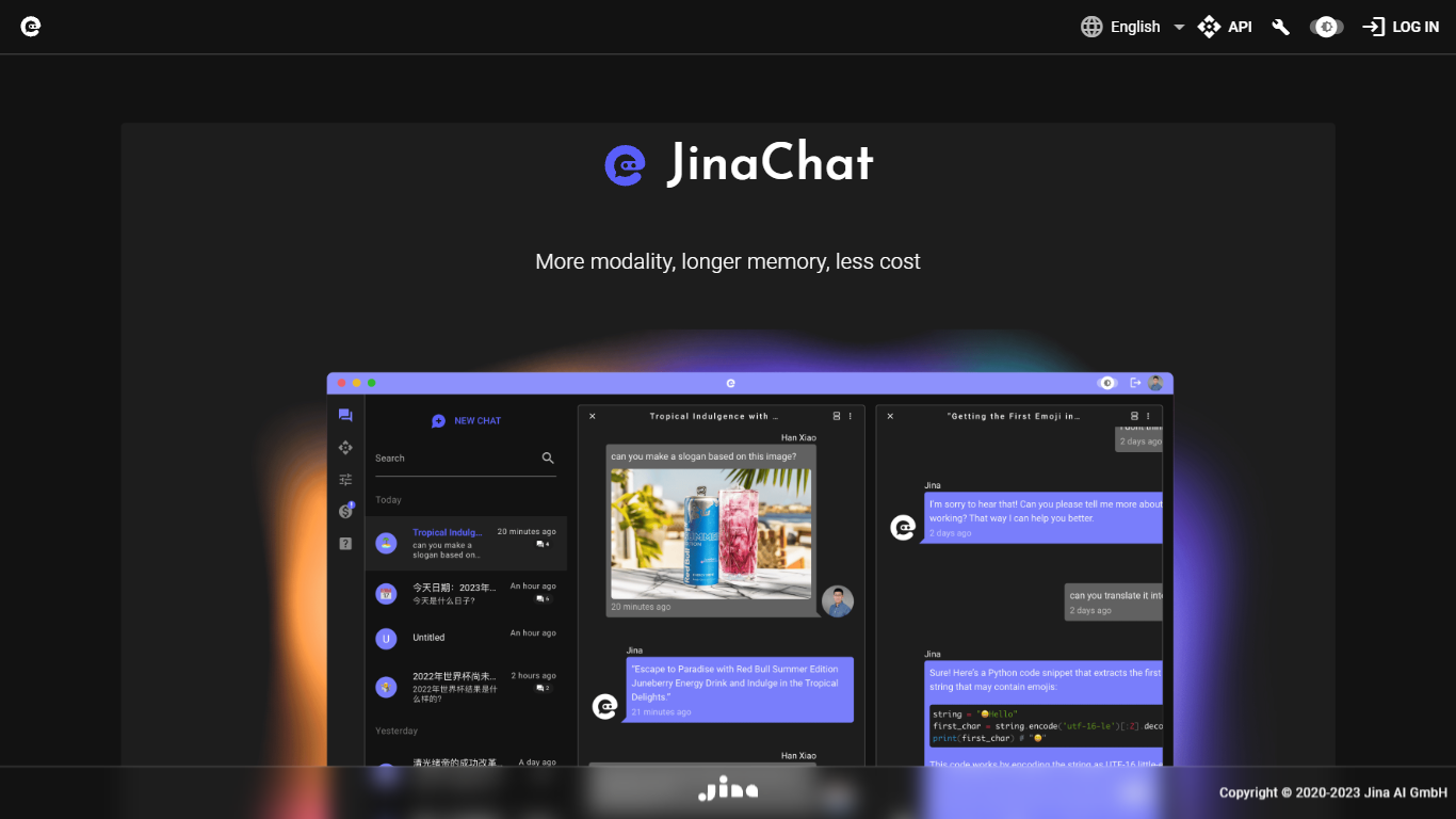 JinaChat revolutionizes digital communication by offering a multimodal approach that integrates various forms of media, providing users with an interactive and engaging chat experience. The platform is designed to have an extensive memory, ensuring that all conversations and data are stored securely for easy retrieval anytime, effectively eliminating the constraints of short-term memory prevalent in traditional chat systems. Additionally, JinaChat provides a cost-effective API that allows seamless integration without imposing financial burdens, which is particularly beneficial for small businesses and individual users. The focus on multimodality, extended memory, and affordability positions JinaChat as a novel solution in the realm of online communication, catering to both personal and professional usage scenarios.