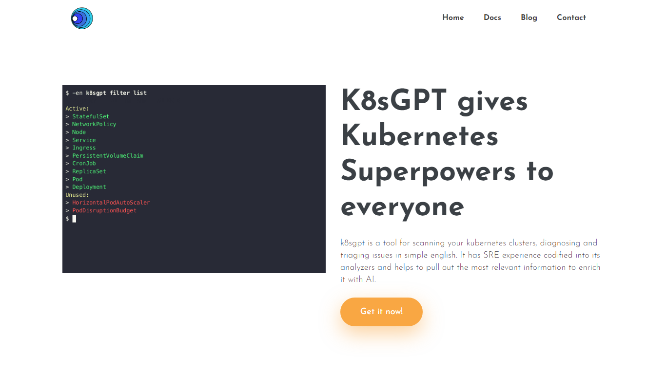 Elevate your Kubernetes efficiency with K8sGPT, the AI-powered tool designed to enhance the Site Reliability Engineering (SRE) prowess within your cluster management. Experience ultimate Kubernetes support with easy-to-comprehend diagnostics, triaging in plain language, and AI-enriched analytics, all tailored to streamline your SRE tasks. K8sGPT seamlessly integrates with CNCF conformant Kubernetes clusters, ensuring compatibility and relevance with the latest releases. Stay ahead of the curve with automatic problem detection and AI-directed insights, geared to help you work smarter, reduce noise, and prioritize what matters most in your Kubernetes environment.