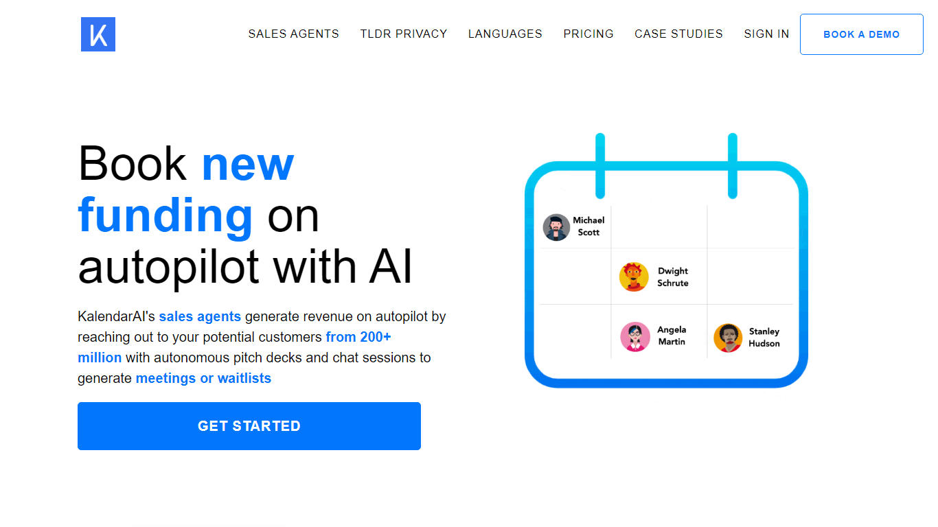 Discover the future of revenue generation with KalendarAI—the premier platform for turbocharging your sales process. KalendarAI’s innovative AI sales agents work on autopilot to connect with potential customers from an extensive global database of over 200+ million companies. These intelligent agents engage prospects through personalized autonomous pitch decks and interactive live chat sessions, effectively securing meetings or growing your waitlist. With a seamless process that starts from crafting your unique pitch to deploying AI-optimized, spam-tolerant mailboxes for outreach, KalendarAI simplifies the path to your next sale. Transitioning from sourcing prospects to booking new meetings, this automated system delivers results while freeing up your time. Leaders and decision-makers across sales and marketing spheres highly endorse KalendarAI for its accuracy in B2B lead generation and its exceptional capability in booking meetings on autopilot. Embrace the ease of personalized cold email outreach at scale with KalendarAI.