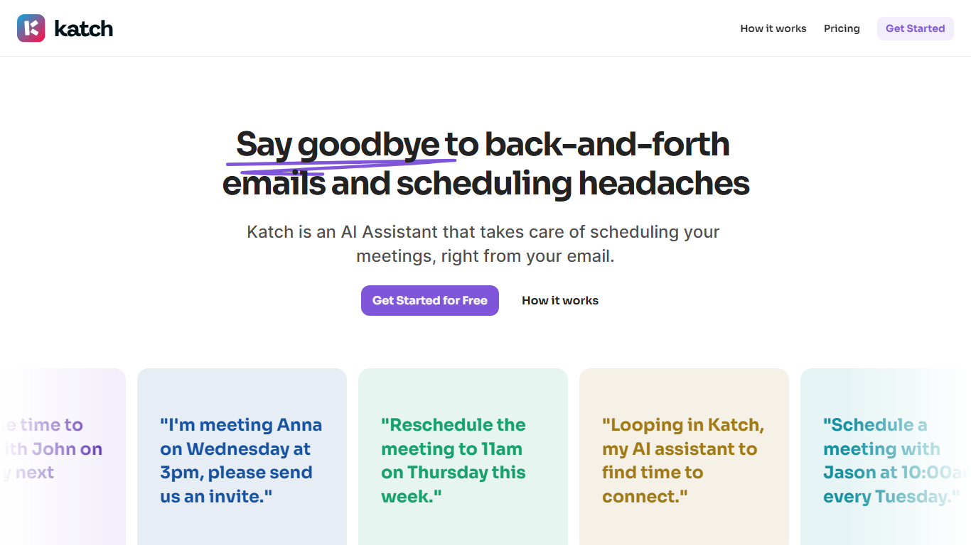 Simplify your scheduling with Katch, the AI Assistant revolutionizing the way you organize meetings. Say goodbye to the hassle of back-and-forth emails to find suitable times; Katch does it all from the comfort of your inbox.