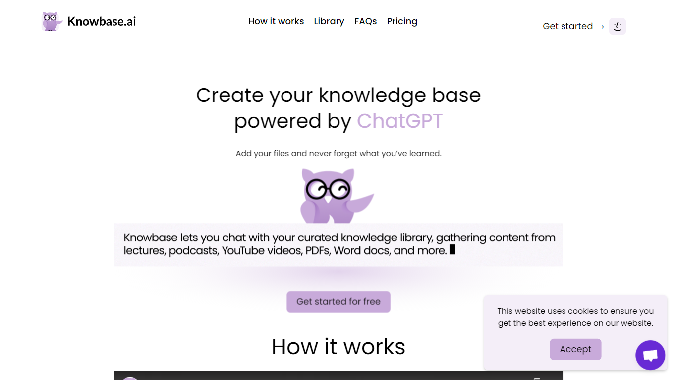 The platform offers a library feature where users can access and organize all their files. Additionally, Knowbase promotes the sharing of knowledge, enabling users to share their chatbot with others. The platform supports a wide range of file formats, including PDF, MP4, MP3, TXT, PPTX, and DOCX.