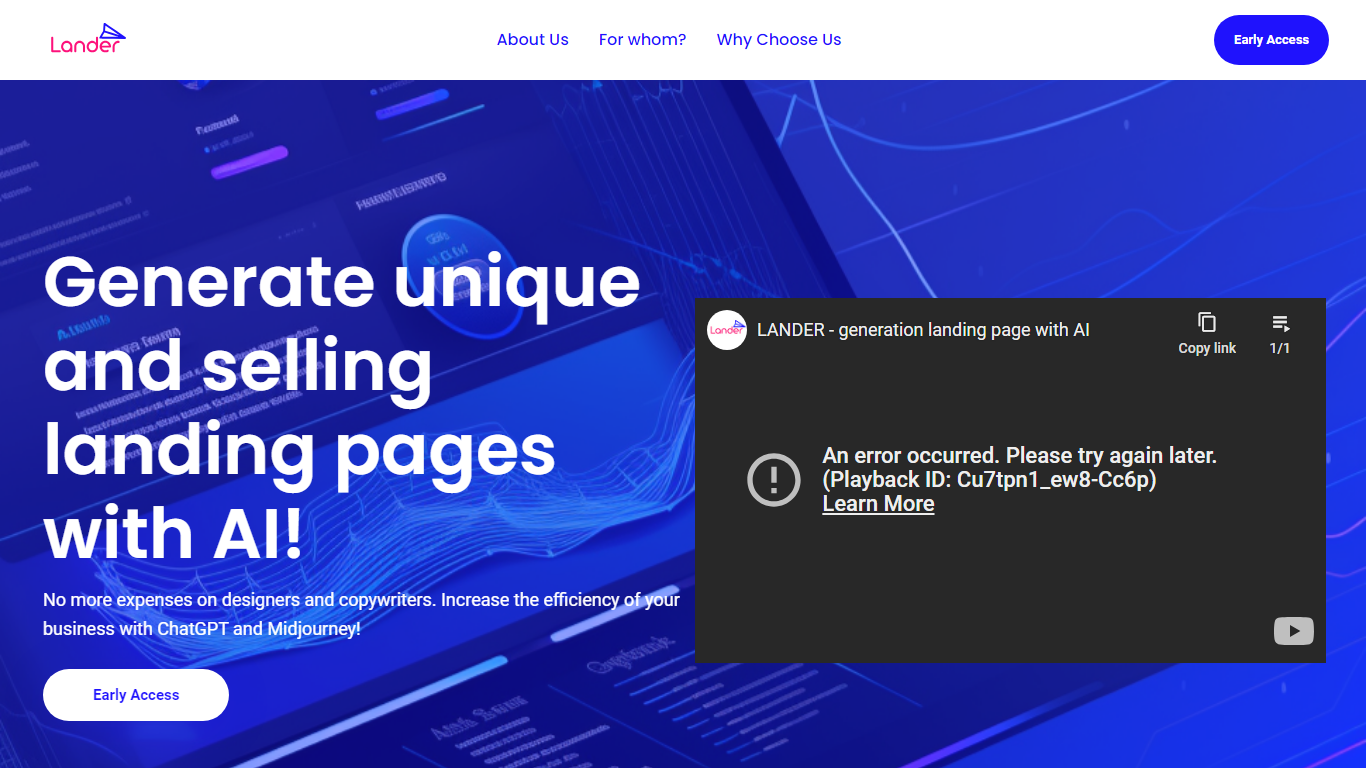 Transform your online presence with Lander, the innovative Landing Page AI Generator that reimagines how quickly and efficiently you can create engaging landing pages. Our AI-driven tool streamlines the process, enabling you to design high-converting landing pages tailored to your unique brand and audience.