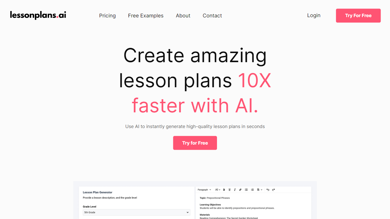 Try our AI Lesson Plan Generator for free today and experience the convenience and effectiveness of automated lesson planning. Say goodbye to the stress of creating lesson plans and let our AI do the work for you. Transform your teaching experience and unlock the full potential of your students with our #1 AI Lesson Plan Generator.