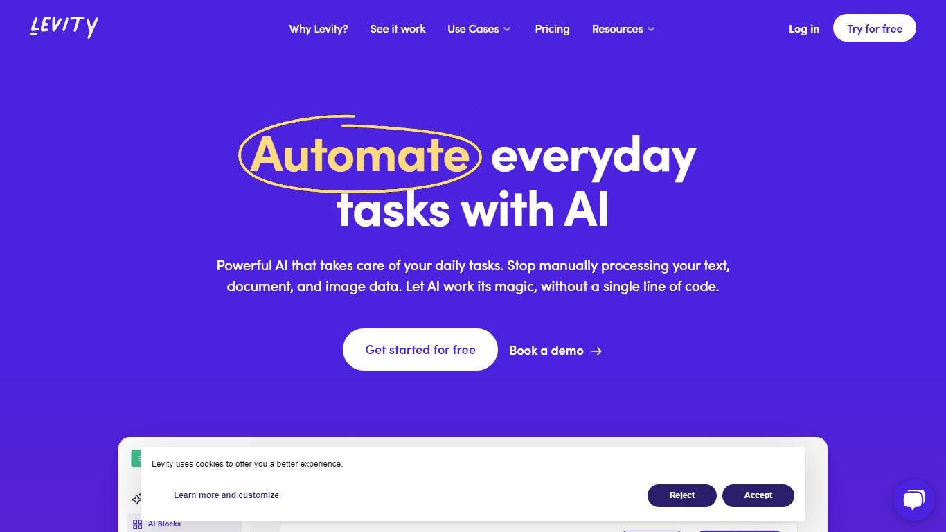 Build automated workflows for your daily repetitive tasks without a single line of code. Levity allows non-technical users to create AI models to classify text, images, and documents, and save time and brain space on manual tedious work.