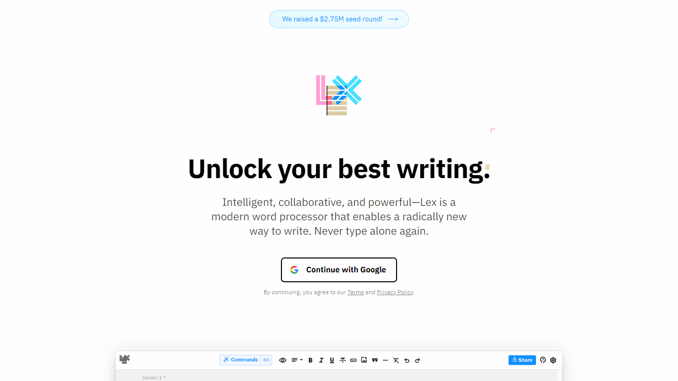 Craft your words like a pro with Lex, the modern word processor designed to transform the way you write. Lex combines intelligent technology with seamless collaboration, making writing an enjoyable and efficient experience. With a $2.75M seed round raised, this innovative platform is on the rise.