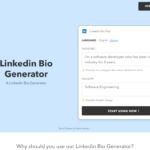 Elevate your professional presence with the nichesss LinkedIn Bio Generator, your go-to solution for crafting a captivating LinkedIn Summary or Bio. Designed to make an impactful impression, this tool efficiently creates an “about me” section tailored to your industry and personal brand. The process is straightforward and AI-powered, ensuring a quick and personalized result. With the nichesss LinkedIn Bio Generator, standing out amongst competition on LinkedIn has never been easier. Start shaping your unique professional narrative today—effortlessly and effectively.