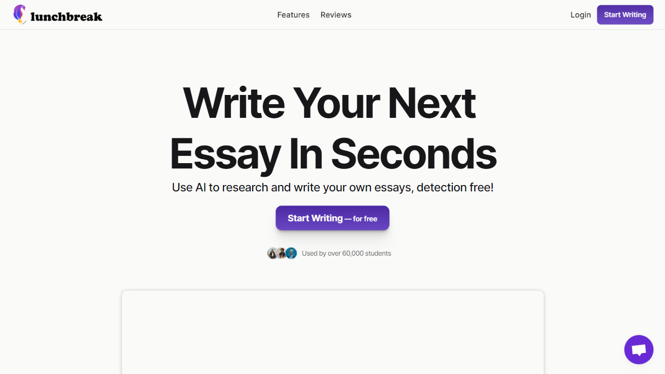 - **Ai detection & humanization:** Turn any content undetectable with Lunchbreak’s fine-tuned model trained on over 40,000 student essays & research papers