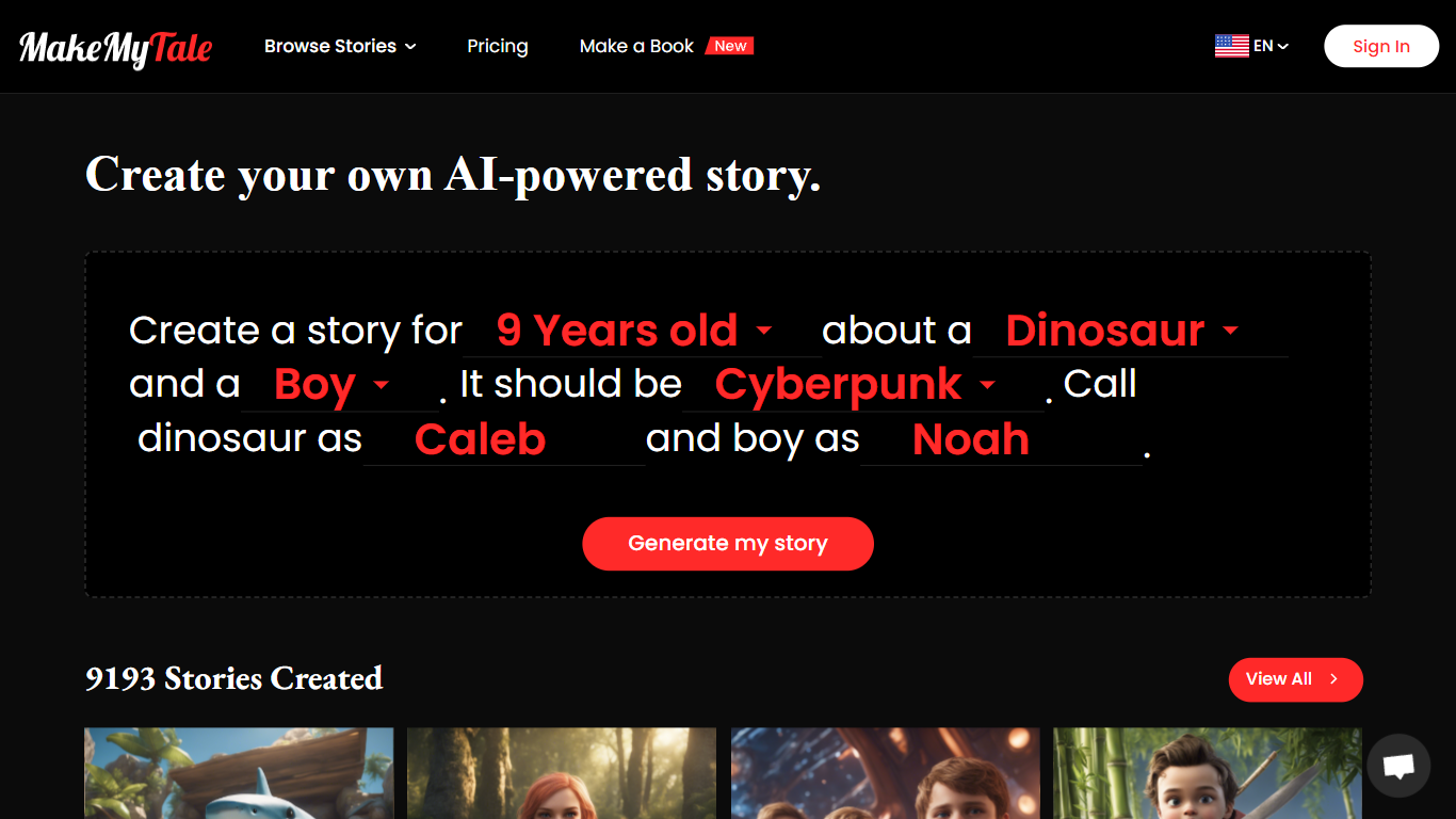 The website offers a wide range of tools and resources to support storytelling, making it easy and fun for children to express their ideas and develop their writing skills. From customizable characters and settings to engaging prompts and story templates, MakeMyTale provides everything children need to bring their imaginations to life. The intuitive interface allows children to easily navigate through different options and create their own unique storylines.