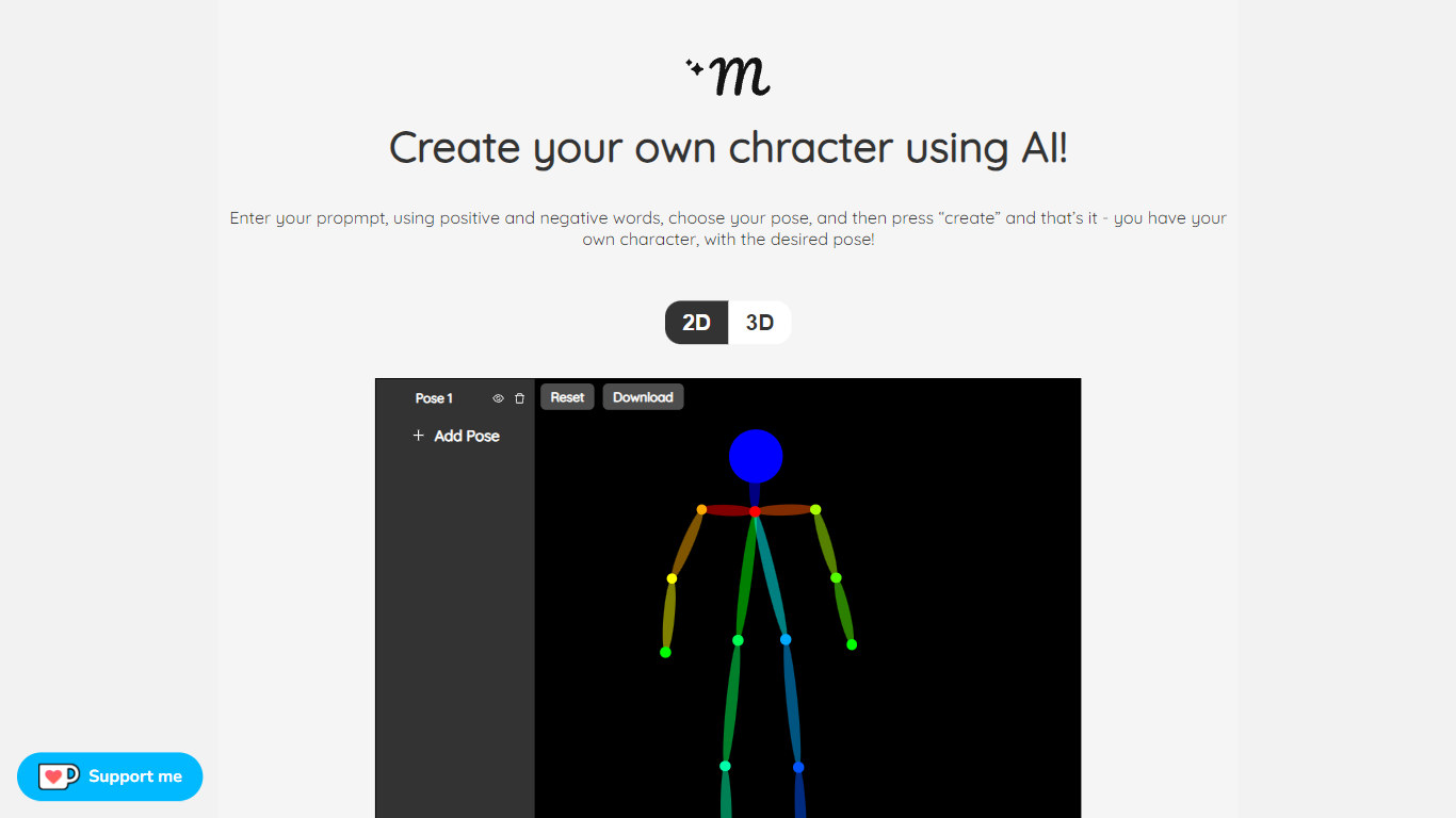 - **2D and 3D Options**: Choose between two-dimensional or three-dimensional character representations.