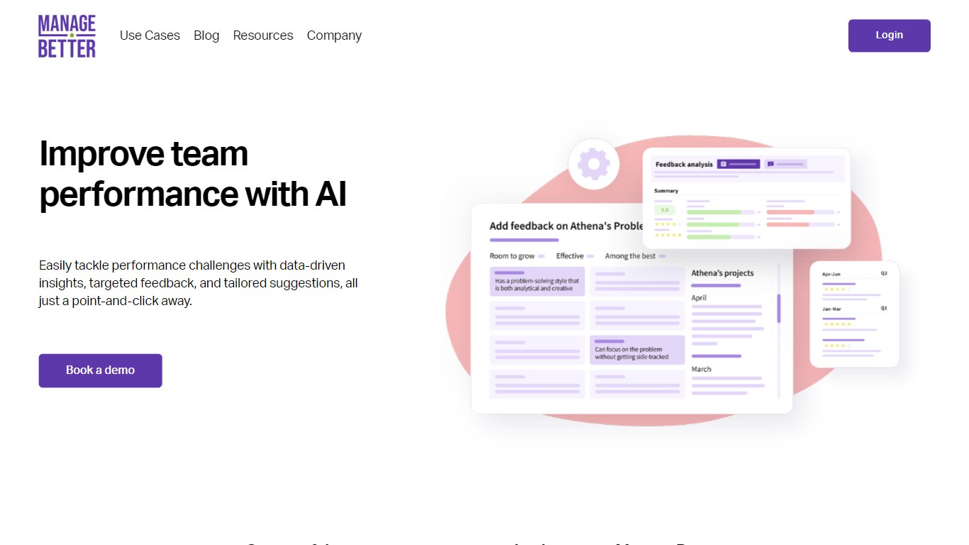 ManageBetter is a comprehensive manager empowerment software that is designed to significantly enhance productivity and transform managerial effectiveness. By leveraging data-driven insights, targeted feedback, and tailored performance suggestions, our platform enables managers to build an engaged and high-performing team.
