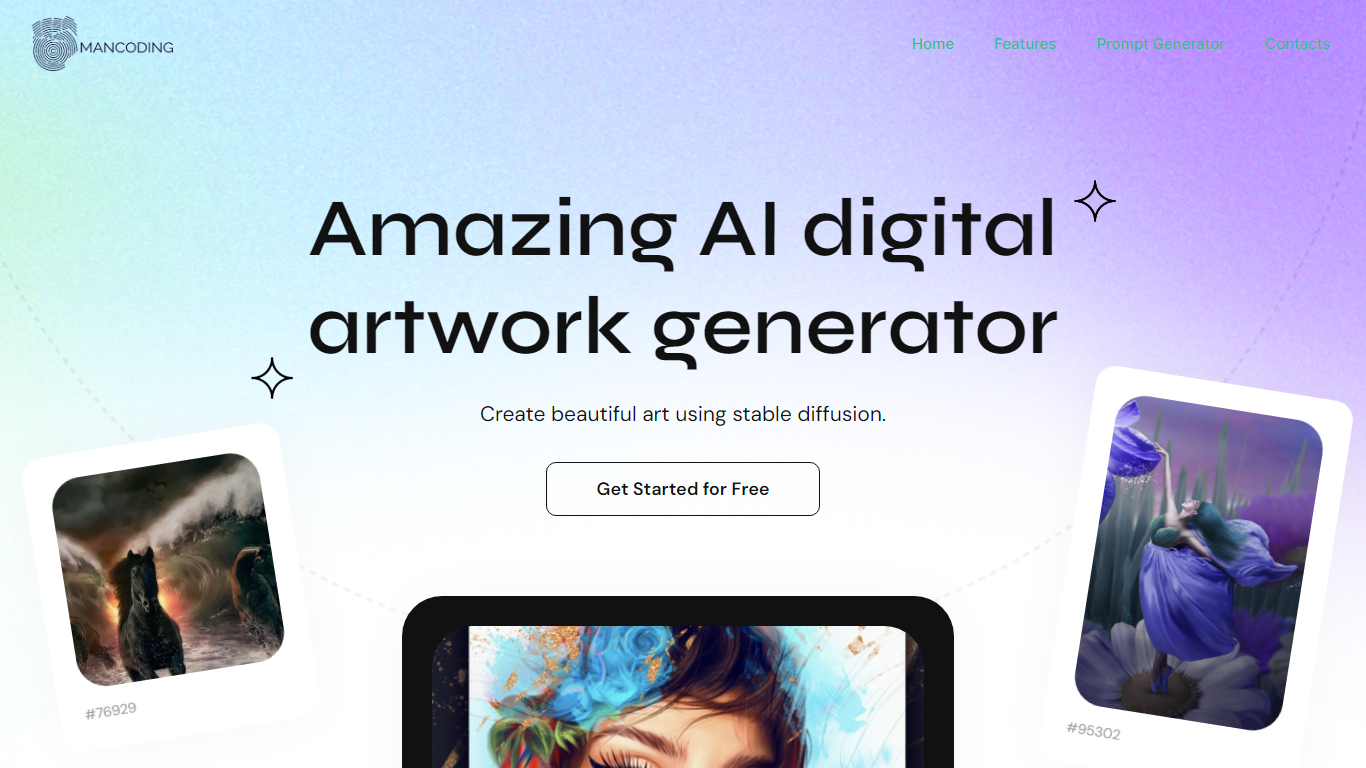 Welcome to Mancoding, the innovative platform where creativity meets artificial intelligence to produce stunning digital artwork. Our AI-powered text-to-image diffusion model allows you to convert your imaginative text prompts into high-quality, realistic art pieces in mere seconds. At Mancoding, we offer you unlimited creative freedom with a generator that is accessible from any device—be it a laptop, tablet, or mobile.